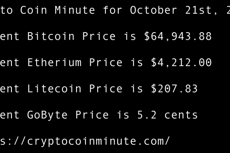 Current Bitcoin Price is $64,943.88 Current Etherium Price is $4,212.00 Current Litecoin Price is $207.83 Current GoByte Price is 5.2 cents Australian Senate committee proposes regulatory model for crypto Ark Invest founder Cathie Wood passed on buying the first Bitcoin Futures ETF On-chain data shows …