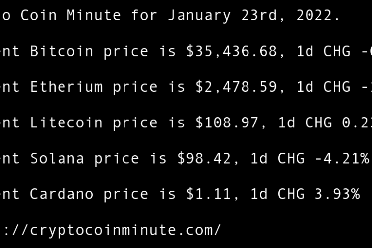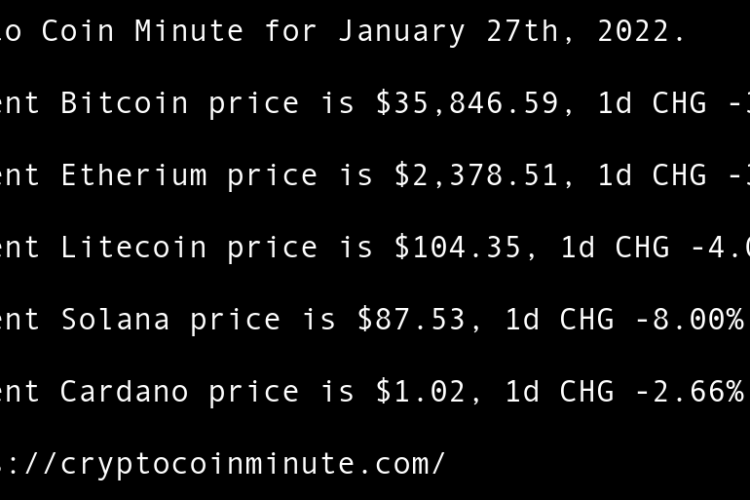 Current Bitcoin price is $36,867.10, 1d CHG -3.72% Current Etherium price is $2,493.60, 1d CHG -4.47% Current Litecoin price is $104.68, 1d CHG -5.62% Current Solana price is $89.58, 1d CHG -6.71% Current Cardano price is $1.01, 1d CHG -5.77% Crypto traders might soon have …