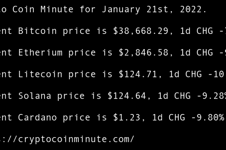 Current Bitcoin price is $38,668.29, 1d CHG -7.95% Current Etherium price is $2,846.58, 1d CHG -9.40% Current Litecoin price is $124.71, 1d CHG -10.02% Current Solana price is $124.64, 1d CHG -9.28% Current Cardano price is $1.23, 1d CHG -9.80% Interest in blockchain investment on …