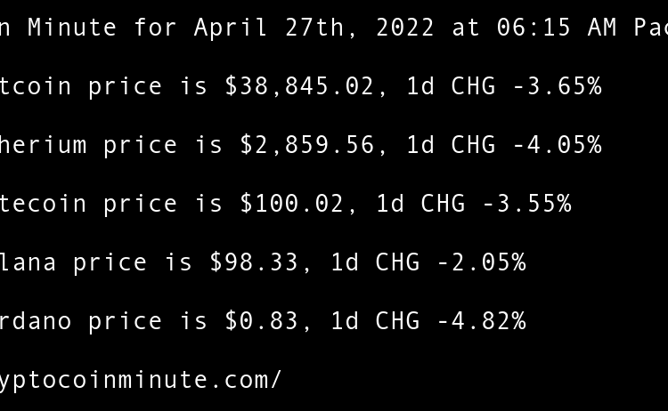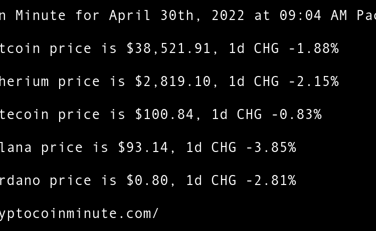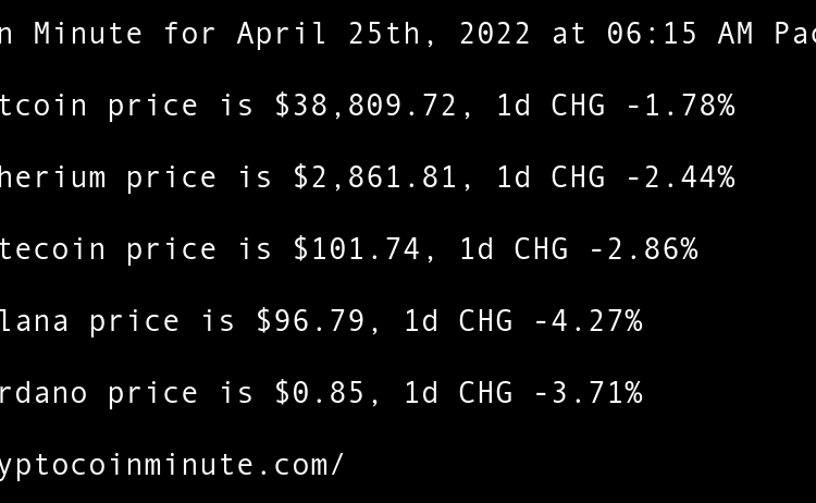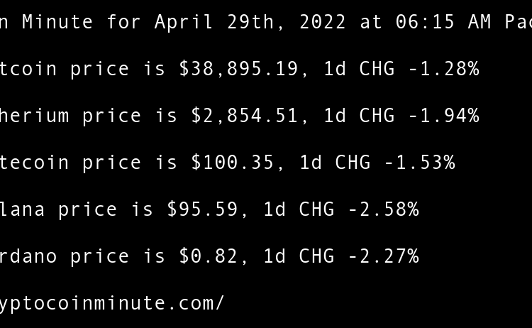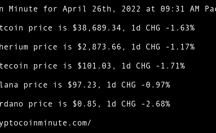 Current Bitcoin price is $38,521.91, 1d CHG -1.88% Current Etherium price is $2,819.10, 1d CHG -2.15% Current Litecoin price is $100.84, 1d CHG -0.83% Current Solana price is $93.14, 1d CHG -3.85% Current Cardano price is $0.80, 1d CHG -2.81% Bitcoin disappoints on bull run …