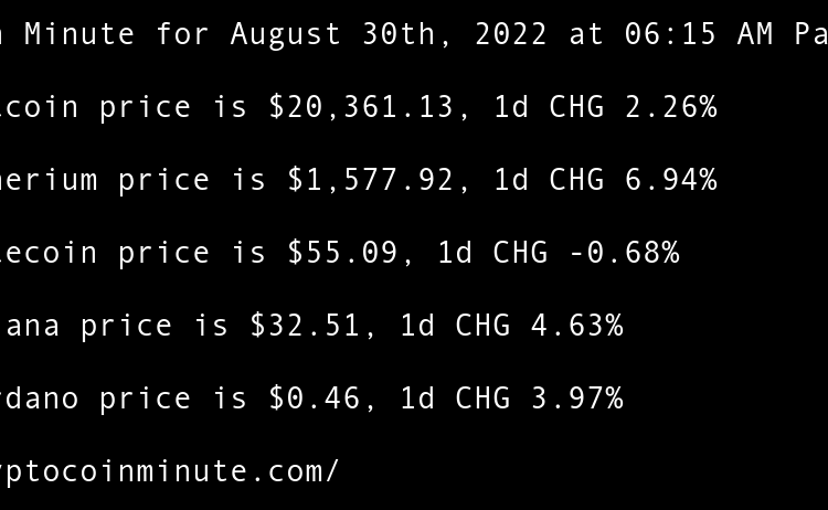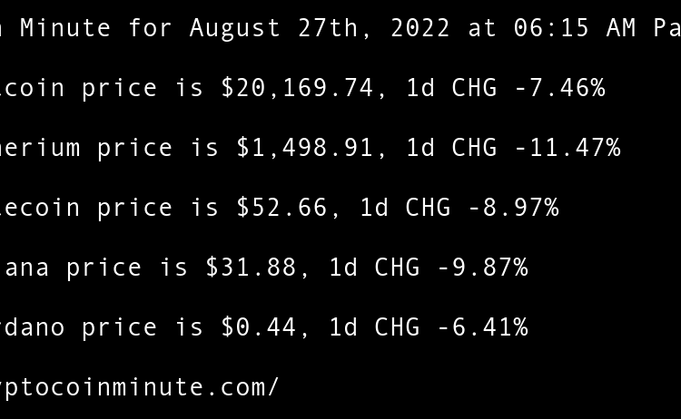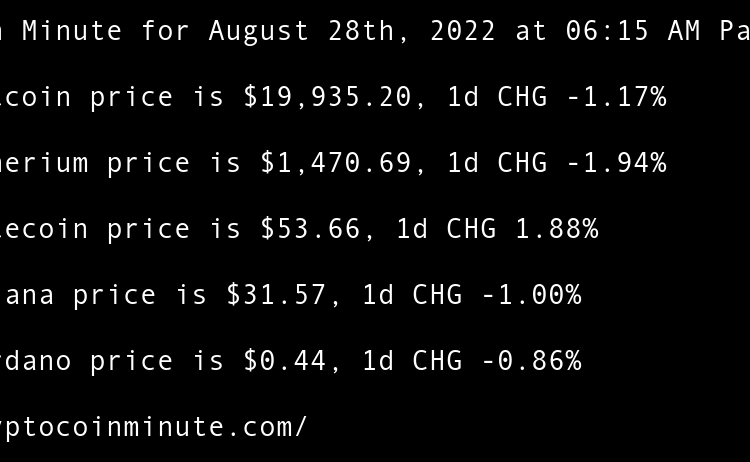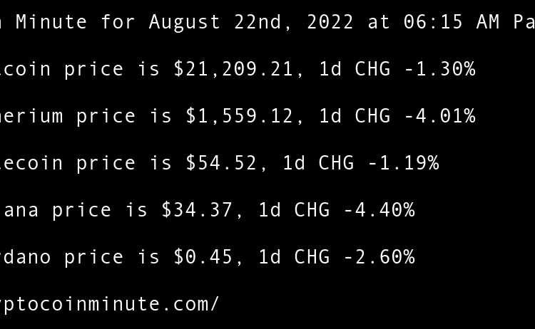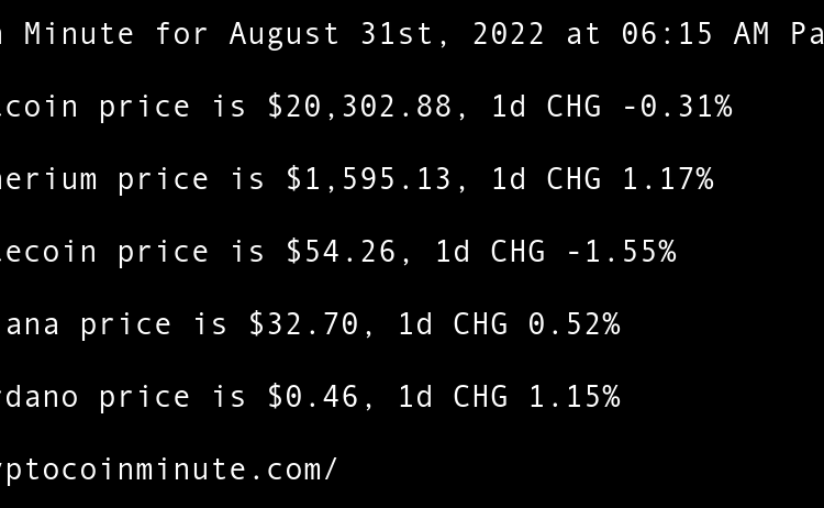 Current Bitcoin price is $20,302.88, 1d CHG -0.31% Current Etherium price is $1,595.13, 1d CHG 1.17% Current Litecoin price is $54.26, 1d CHG -1.55% Current Solana price is $32.70, 1d CHG 0.52% Current Cardano price is $0.46, 1d CHG 1.15% JPMorgan Advises Investors to Sell …