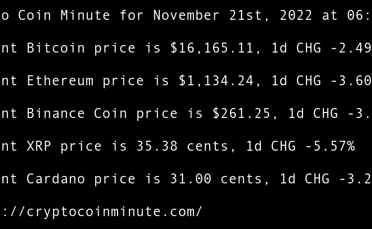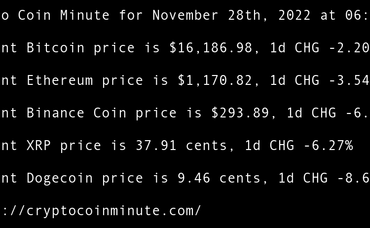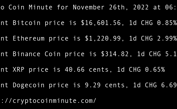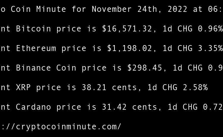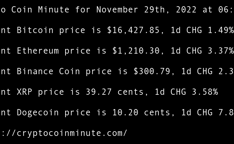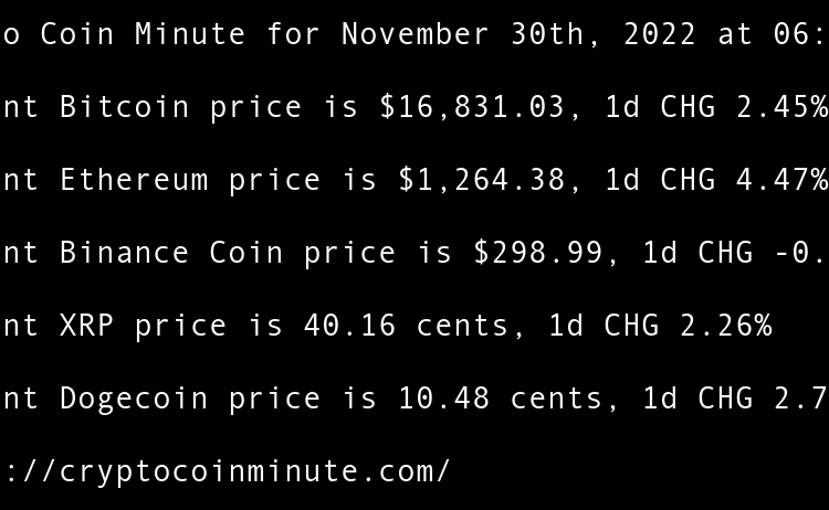 Current Bitcoin price is $16,831.03, 1d CHG 2.45% Current Ethereum price is $1,264.38, 1d CHG 4.47% Current Binance Coin price is $298.99, 1d CHG -0.60% Current XRP price is 40.16 cents, 1d CHG 2.26% Current Dogecoin price is 10.48 cents, 1d CHG 2.70% Sam Bankman-Freed …