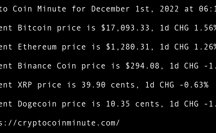 Current Bitcoin price is $17,093.33, 1d CHG 1.56% Current Ethereum price is $1,280.31, 1d CHG 1.26% Current Binance Coin price is $294.08, 1d CHG -1.64% Current XRP price is 39.90 cents, 1d CHG -0.63% Current Dogecoin price is 10.35 cents, 1d CHG -1.22% EmpiresX ‘head …