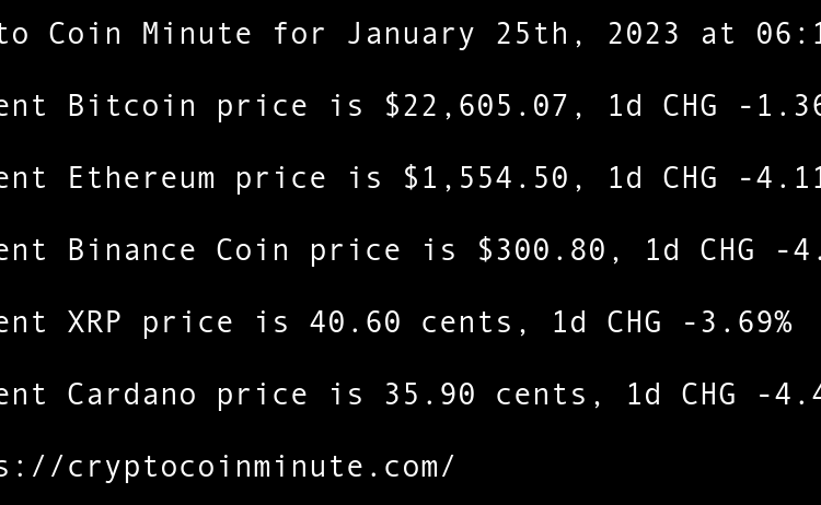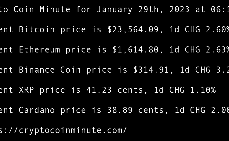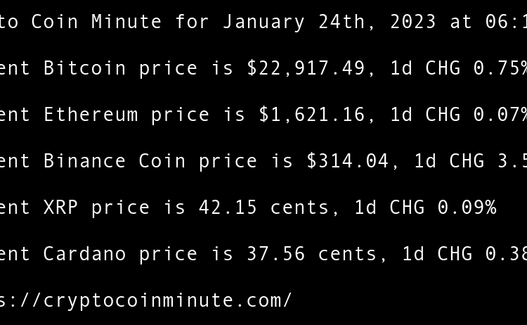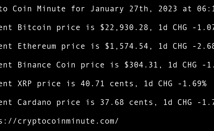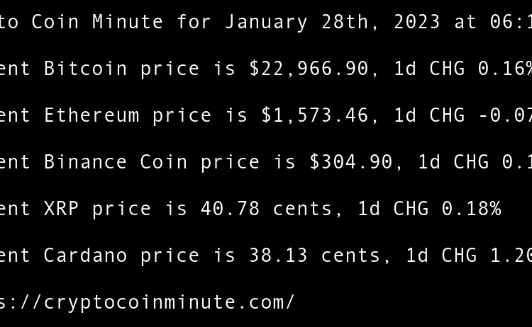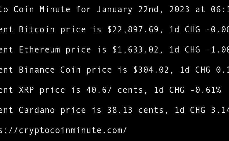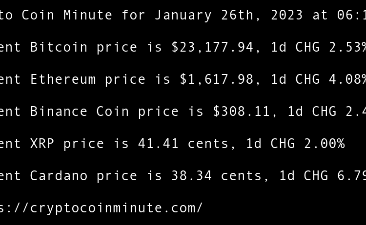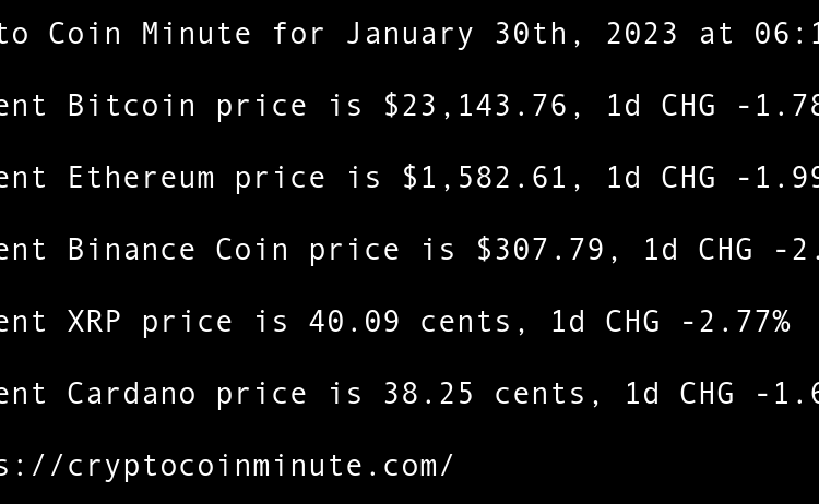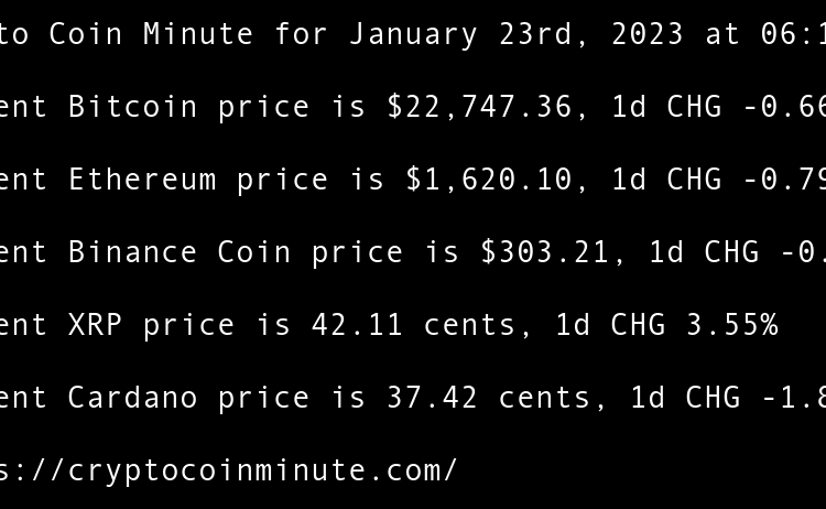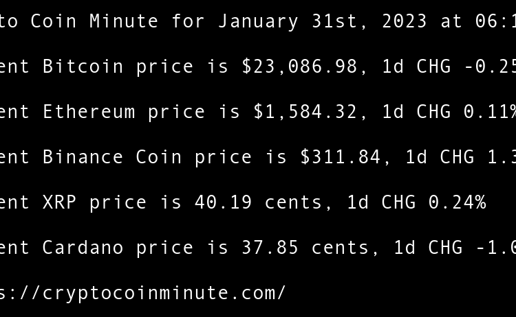 Current Bitcoin price is $23,086.98, 1d CHG -0.25% Current Ethereum price is $1,584.32, 1d CHG 0.11% Current Binance Coin price is $311.84, 1d CHG 1.32% Current XRP price is 40.19 cents, 1d CHG 0.24% Current Cardano price is 37.85 cents, 1d CHG -1.07% Charity Commission …