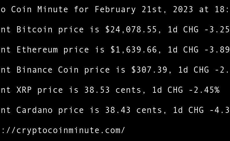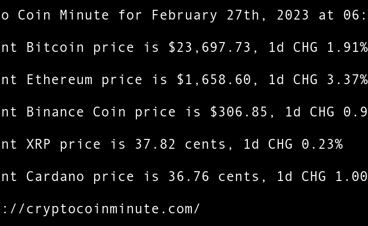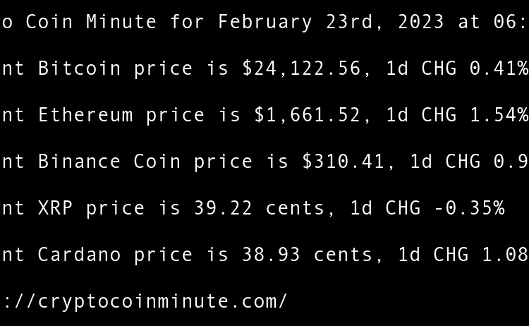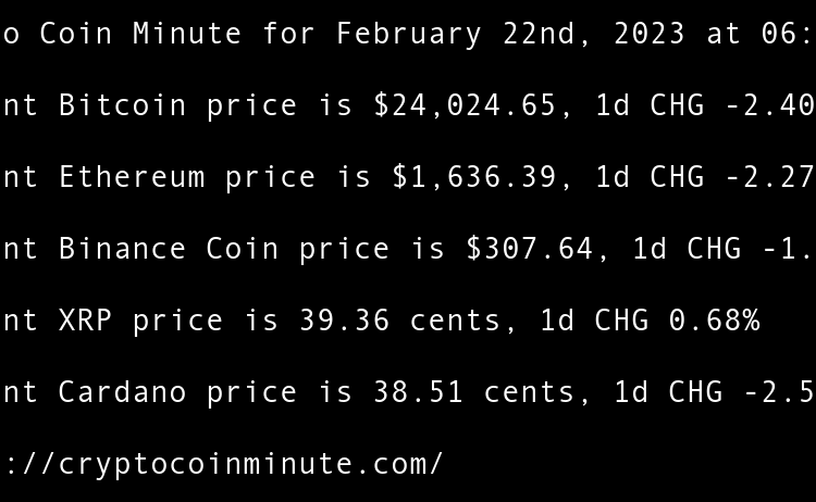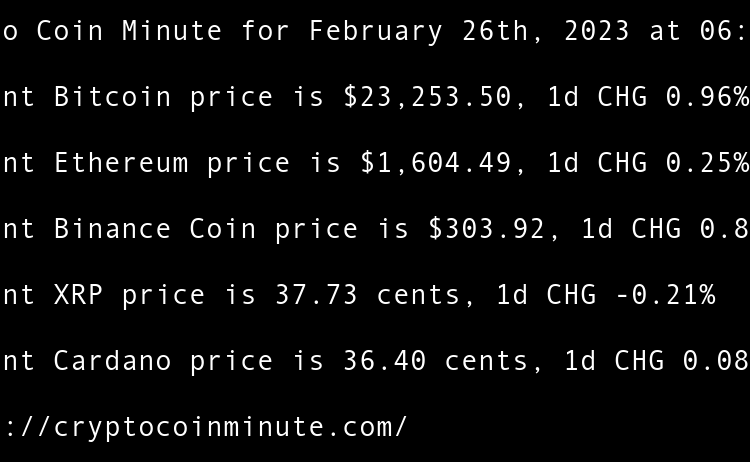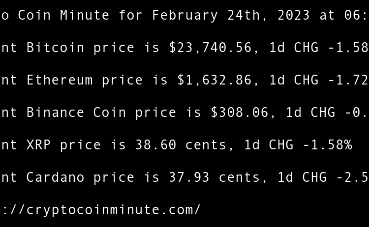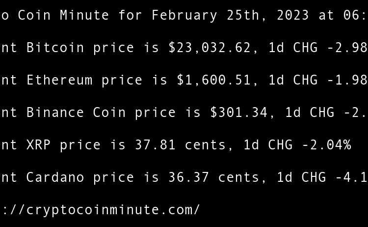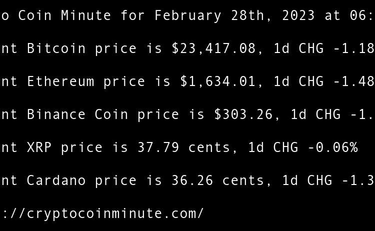Current Bitcoin price is $23,417.08, 1d CHG -1.18% Current Ethereum price is $1,634.01, 1d CHG -1.48% Current Binance Coin price is $303.26, 1d CHG -1.17% Current XRP price is 37.79 cents, 1d CHG -0.06% Current Cardano price is 36.26 cents, 1d CHG -1.37% Two suspects …
