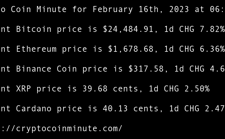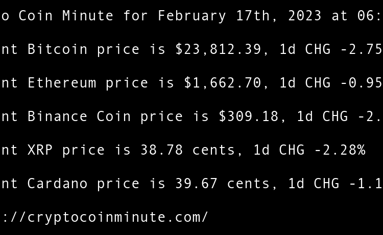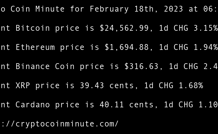 Current Bitcoin price is $24,562.99, 1d CHG 3.15% Current Ethereum price is $1,694.88, 1d CHG 1.94% Current Binance Coin price is $316.63, 1d CHG 2.41% Current XRP price is 39.43 cents, 1d CHG 1.68% Current Cardano price is 40.11 cents, 1d CHG 1.10% The European …