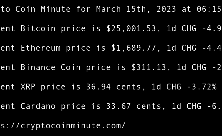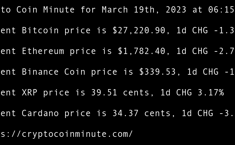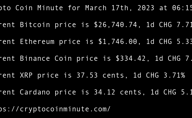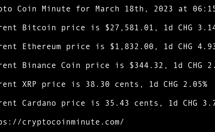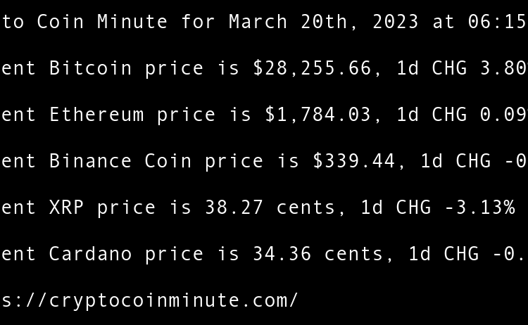 Current Bitcoin price is $28,255.66, 1d CHG 3.80% Current Ethereum price is $1,784.03, 1d CHG 0.09% Current Binance Coin price is $339.44, 1d CHG -0.03% Current XRP price is 38.27 cents, 1d CHG -3.13% Current Cardano price is 34.36 cents, 1d CHG -0.02% Mid-Size Banks …