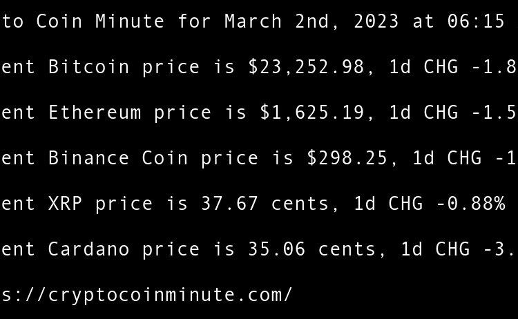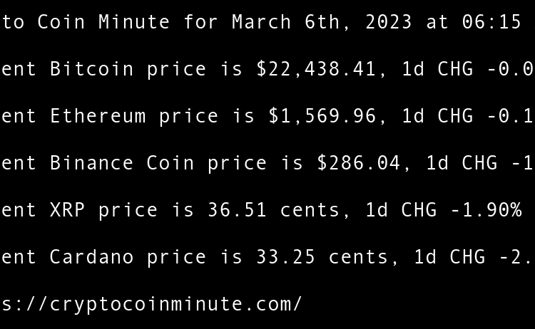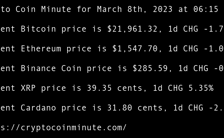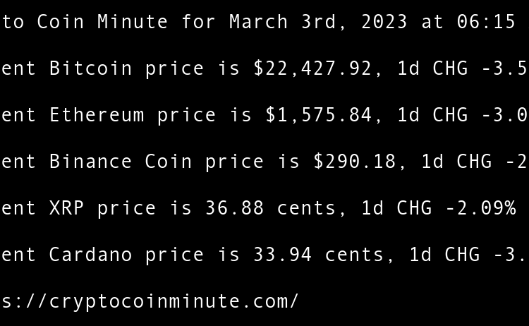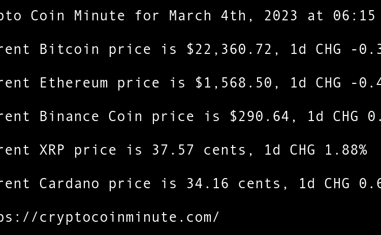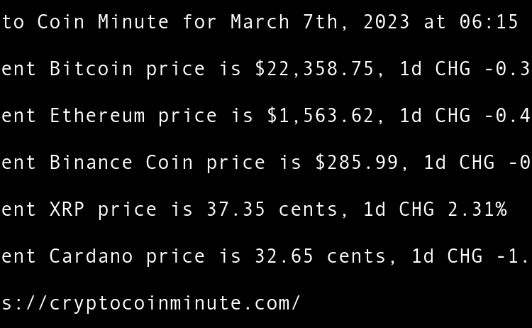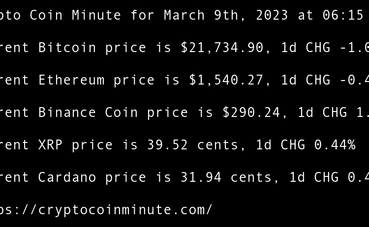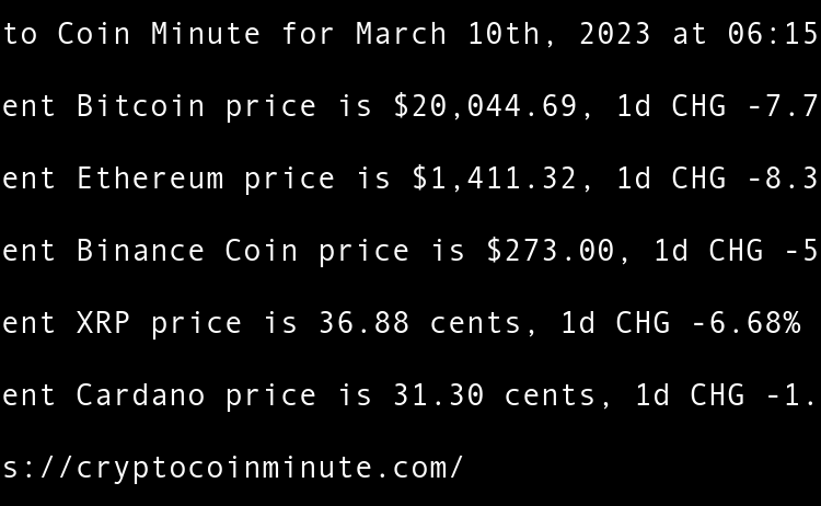 Current Bitcoin price is $20,044.69, 1d CHG -7.78% Current Ethereum price is $1,411.32, 1d CHG -8.37% Current Binance Coin price is $273.00, 1d CHG -5.94% Current XRP price is 36.88 cents, 1d CHG -6.68% Current Cardano price is 31.30 cents, 1d CHG -1.99% FTX Founder’s …