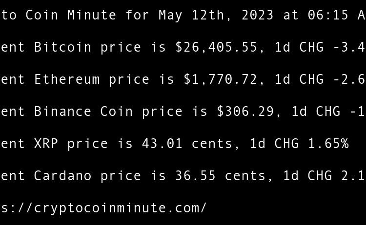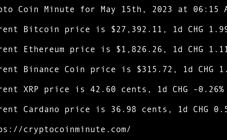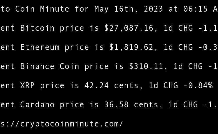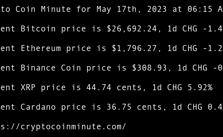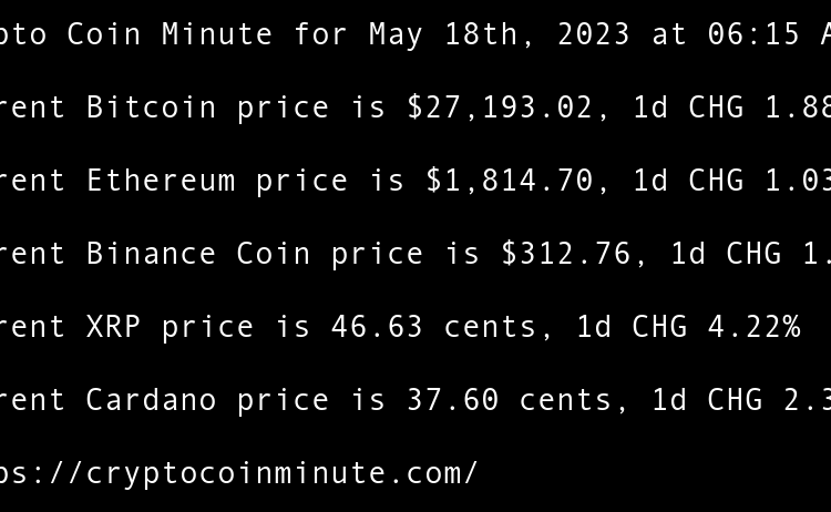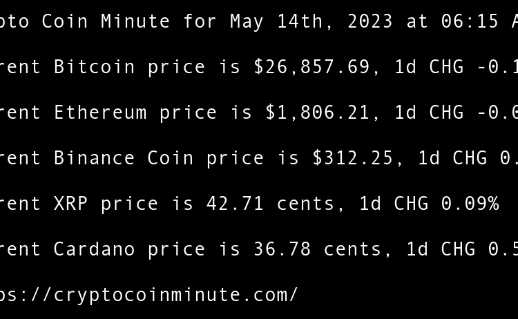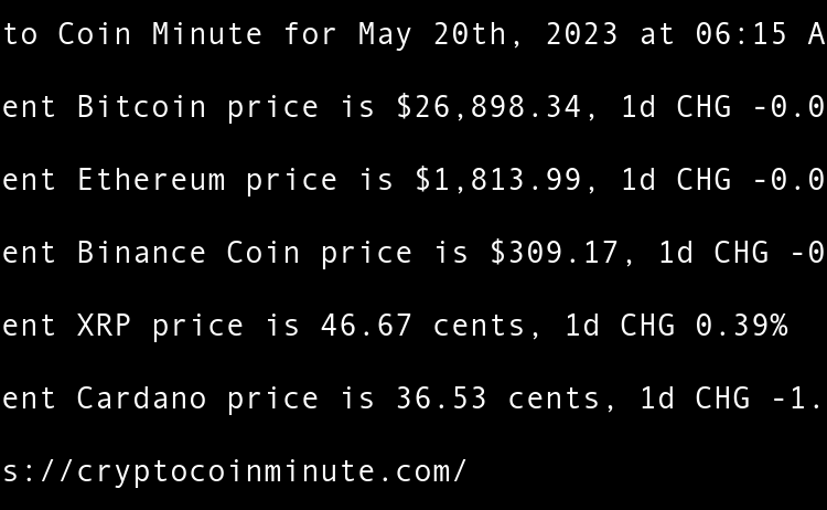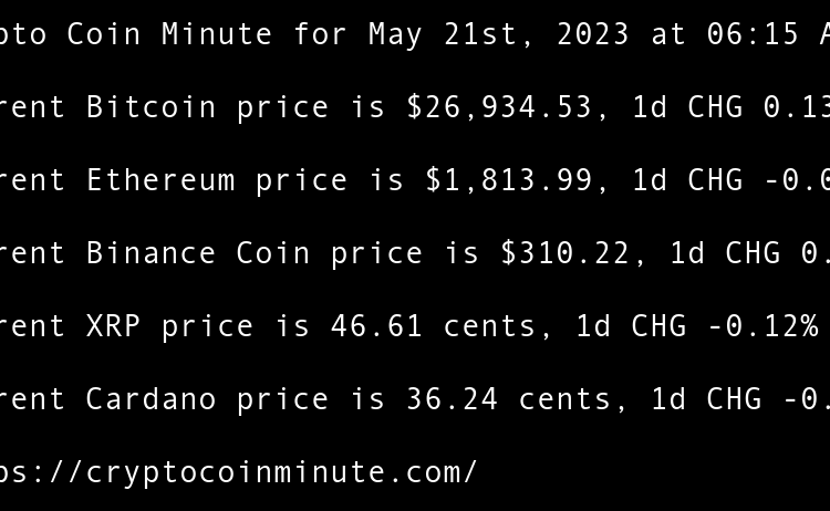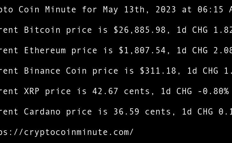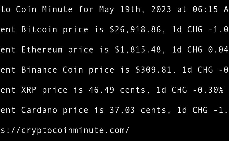 Current Bitcoin price is $26,934.53, 1d CHG 0.13% Current Ethereum price is $1,813.99, 1d CHG -0.00% Current Binance Coin price is $310.22, 1d CHG 0.34% Current XRP price is 46.61 cents, 1d CHG -0.12% Current Cardano price is 36.24 cents, 1d CHG -0.79% Gary Vee’s …
