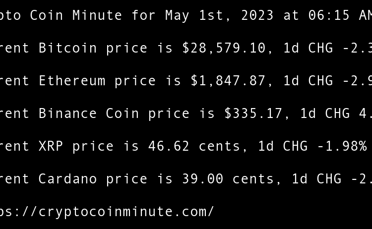 Current Bitcoin price is $28,579.10, 1d CHG -2.39% Current Ethereum price is $1,847.87, 1d CHG -2.90% Current Binance Coin price is $335.17, 1d CHG 4.09% Current XRP price is 46.62 cents, 1d CHG -1.98% Current Cardano price is 39.00 cents, 1d CHG -2.52% Twitter introduces …