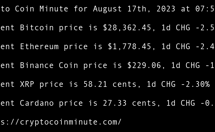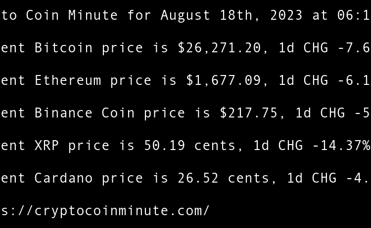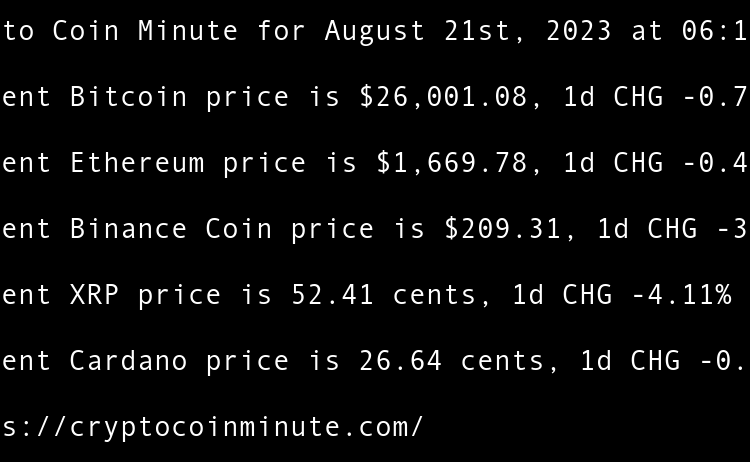 Current Bitcoin price is $26,001.08, 1d CHG -0.71% Current Ethereum price is $1,669.78, 1d CHG -0.41% Current Binance Coin price is $209.31, 1d CHG -3.53% Current XRP price is 52.41 cents, 1d CHG -4.11% Current Cardano price is 26.64 cents, 1d CHG -0.93% Gemini Responds …
