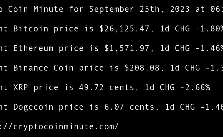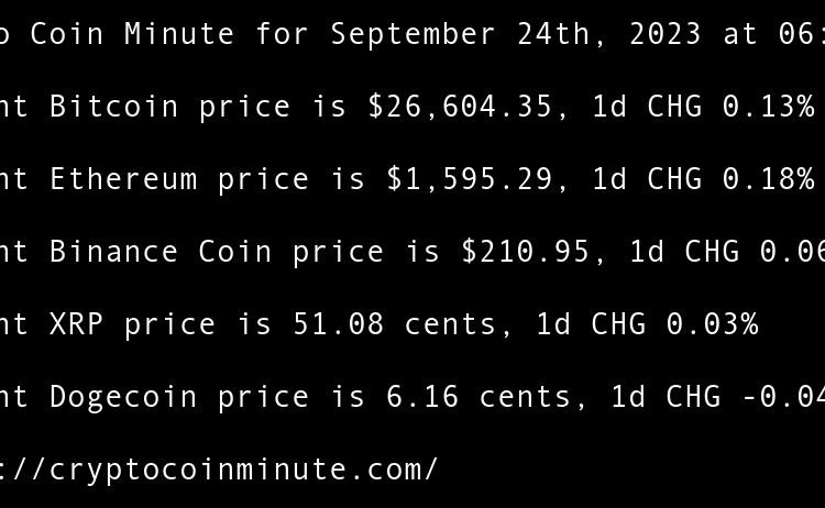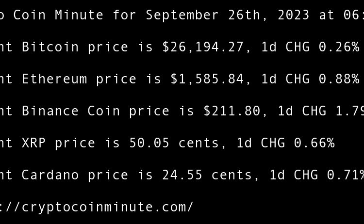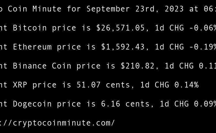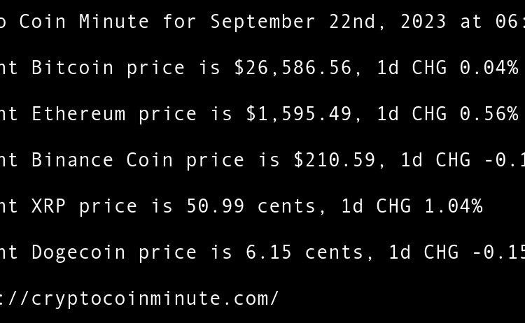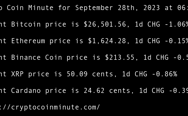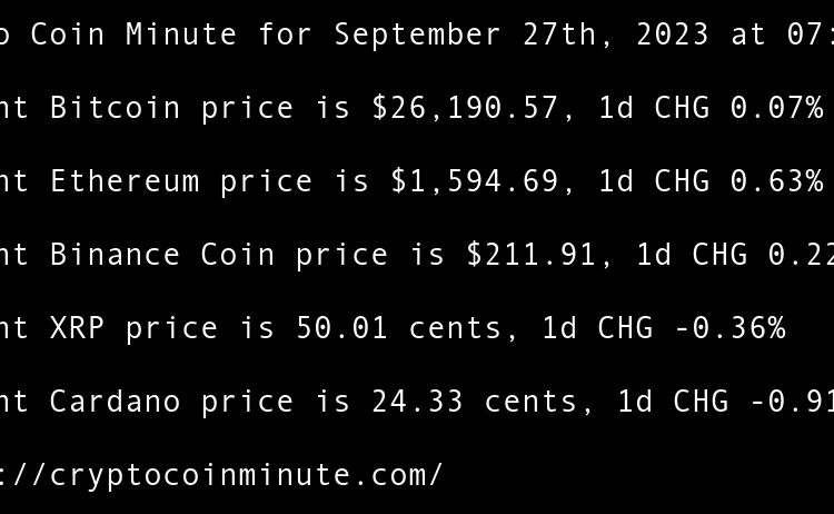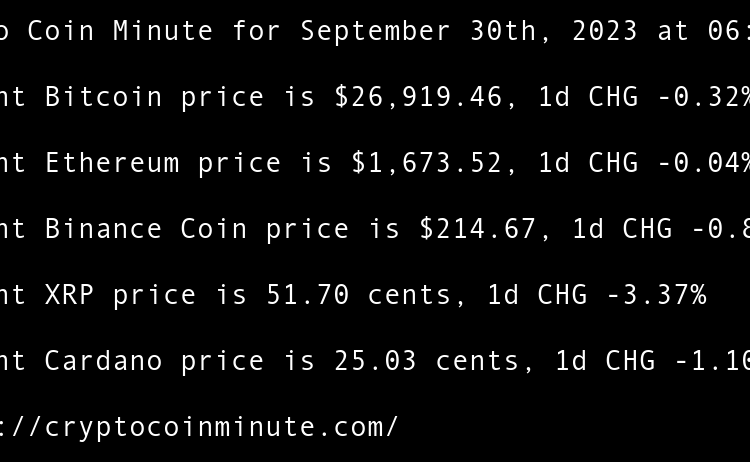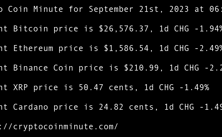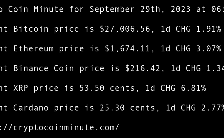 Current Bitcoin price is $26,919.46, 1d CHG -0.32% Current Ethereum price is $1,673.52, 1d CHG -0.04% Current Binance Coin price is $214.67, 1d CHG -0.81% Current XRP price is 51.70 cents, 1d CHG -3.37% Current Cardano price is 25.03 cents, 1d CHG -1.10% Google Cloud …