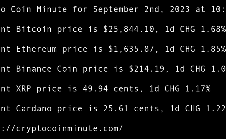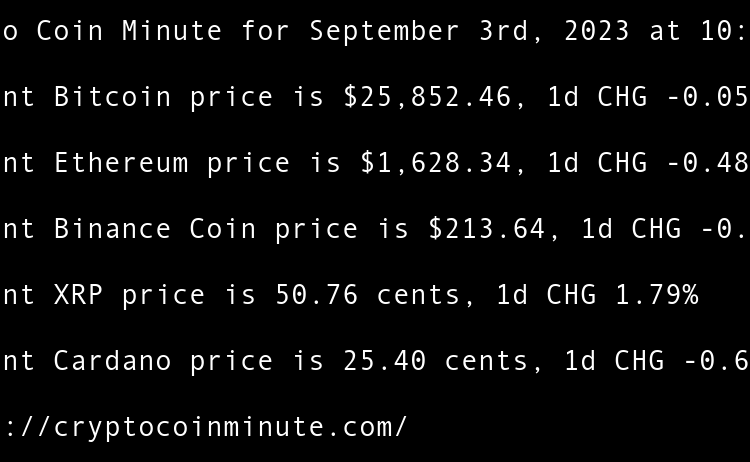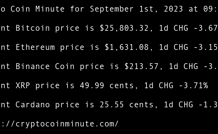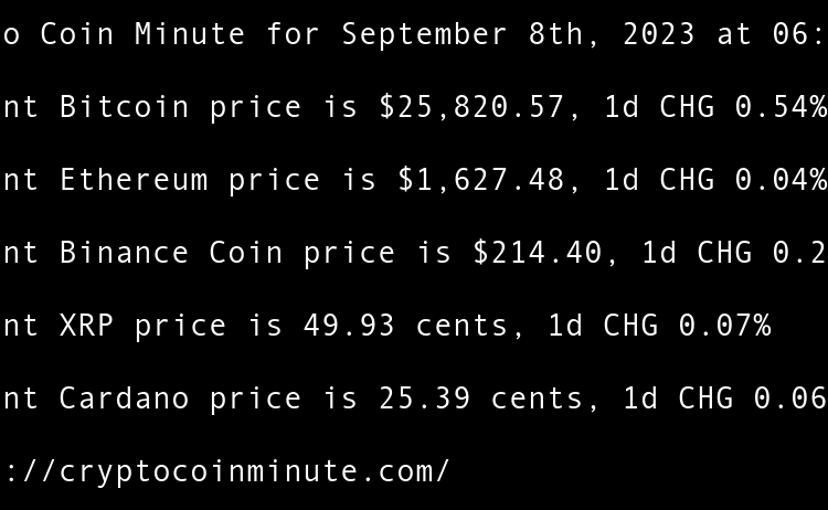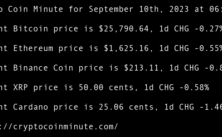 Current Bitcoin price is $25,790.64, 1d CHG -0.27% Current Ethereum price is $1,625.16, 1d CHG -0.55% Current Binance Coin price is $213.11, 1d CHG -0.85% Current XRP price is 50.00 cents, 1d CHG -0.58% Current Cardano price is 25.06 cents, 1d CHG -1.46% Vitalik Buterin’s …