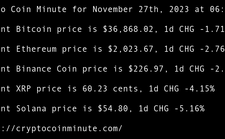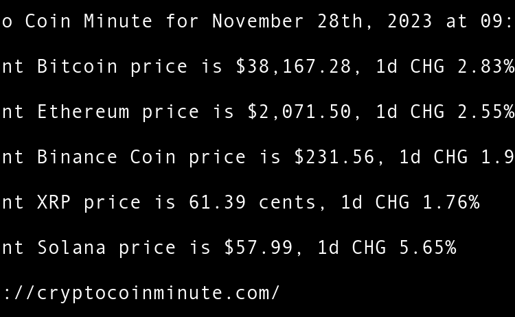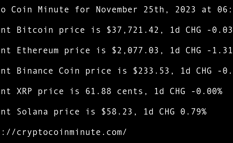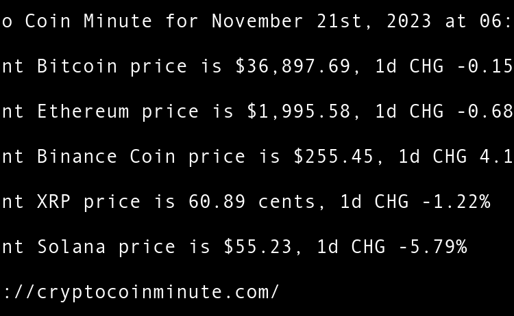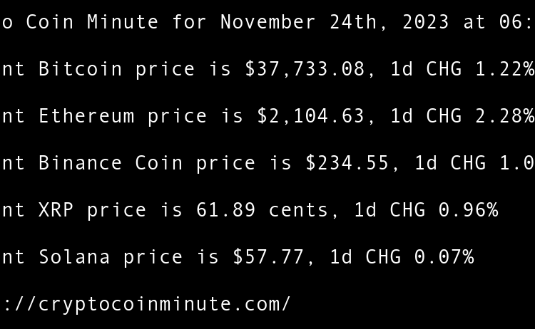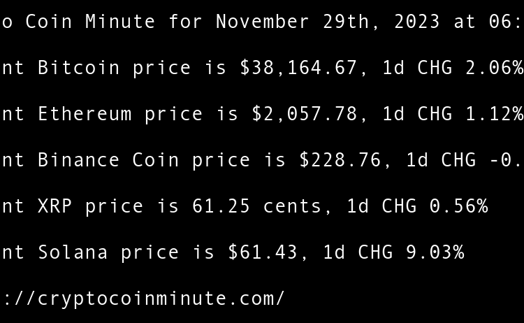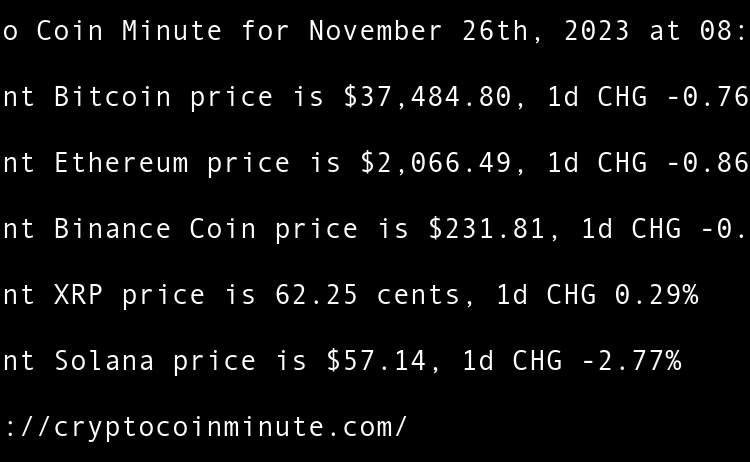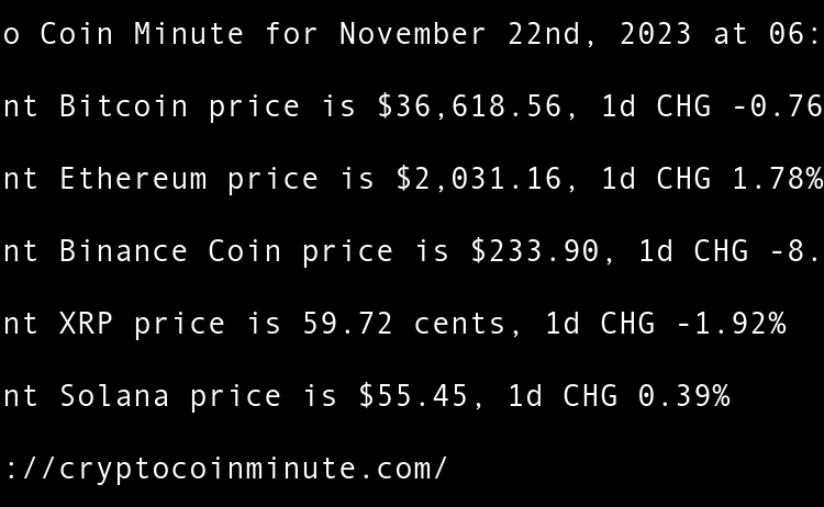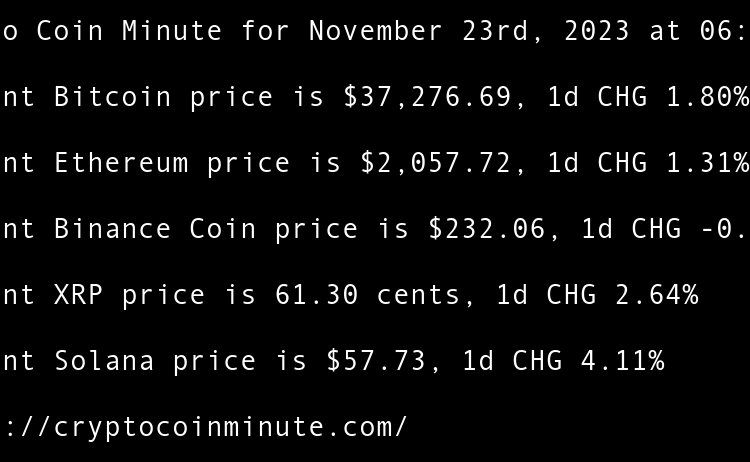 Current Bitcoin price is $37,649.40, 1d CHG -0.16% Current Ethereum price is $2,034.90, 1d CHG 0.56% Current Binance Coin price is $226.82, 1d CHG 0.02% Current XRP price is 60.16 cents, 1d CHG -0.81% Current Solana price is $59.42, 1d CHG -0.46% Binance set to …