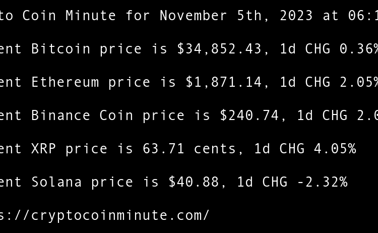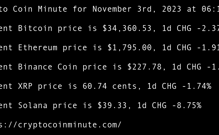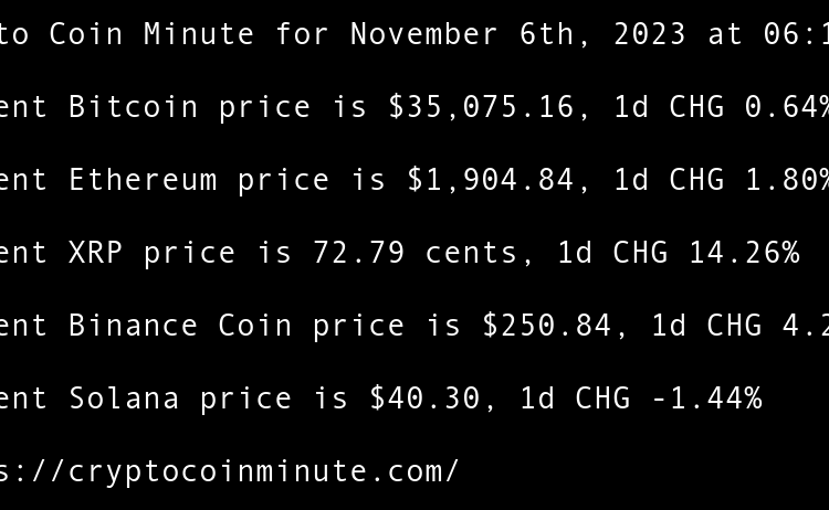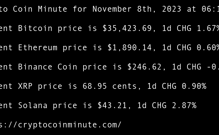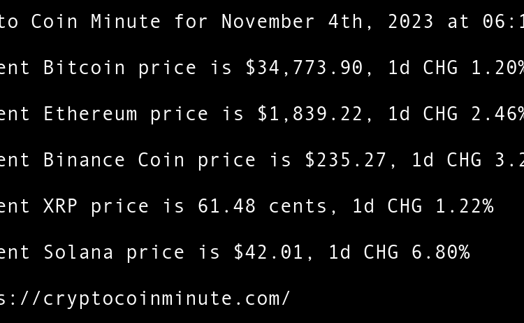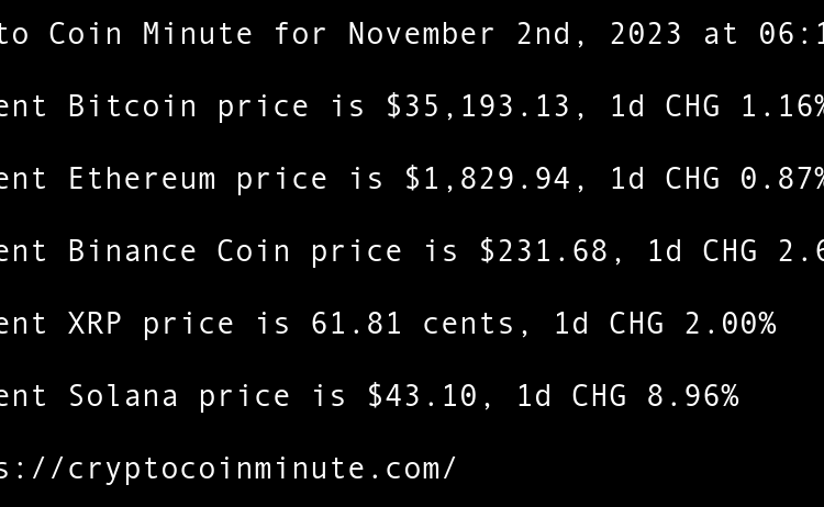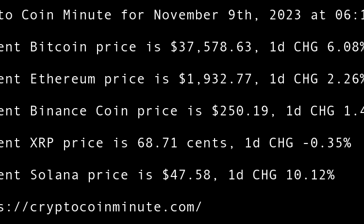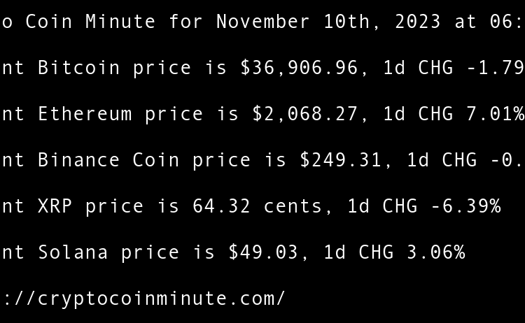Current Bitcoin price is $36,906.96, 1d CHG -1.79% Current Ethereum price is $2,068.27, 1d CHG 7.01% Current Binance Coin price is $249.31, 1d CHG -0.35% Current XRP price is 64.32 cents, 1d CHG -6.39% Current Solana price is $49.03, 1d CHG 3.06% Roblox CEO ‘dreams’ …