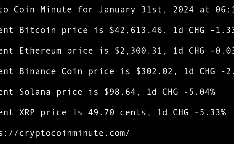 Current Bitcoin price is $42,613.46, 1d CHG -1.33% Current Ethereum price is $2,300.31, 1d CHG -0.03% Current Binance Coin price is $302.02, 1d CHG -2.11% Current Solana price is $98.64, 1d CHG -5.04% Current XRP price is 49.70 cents, 1d CHG -5.33% Top Hollywood Agency …