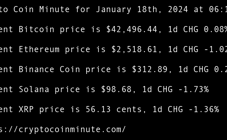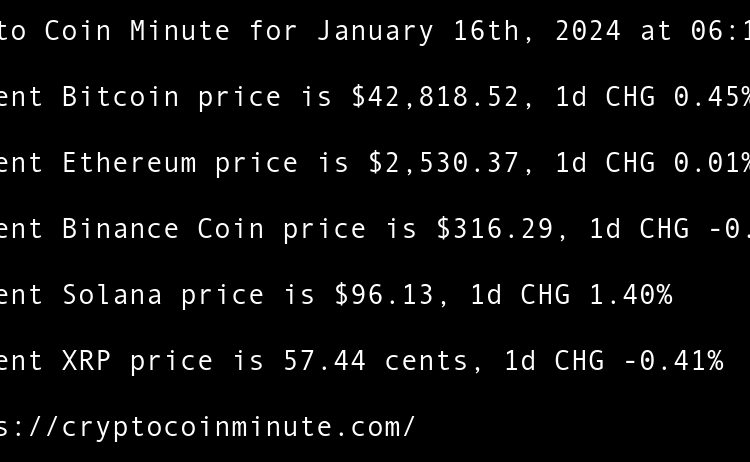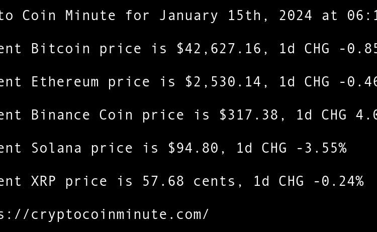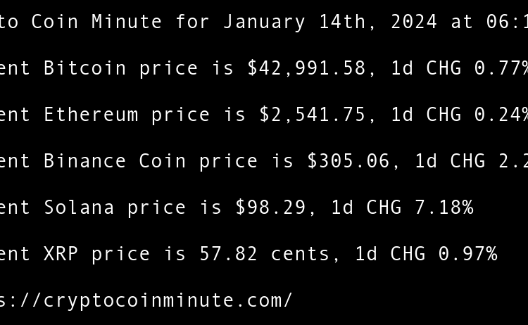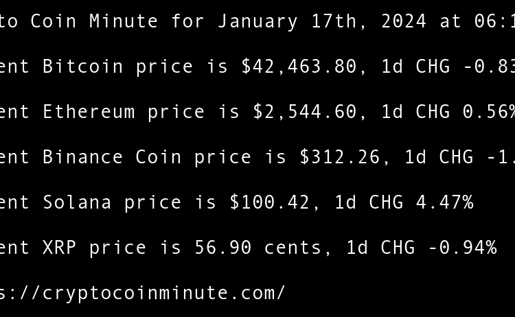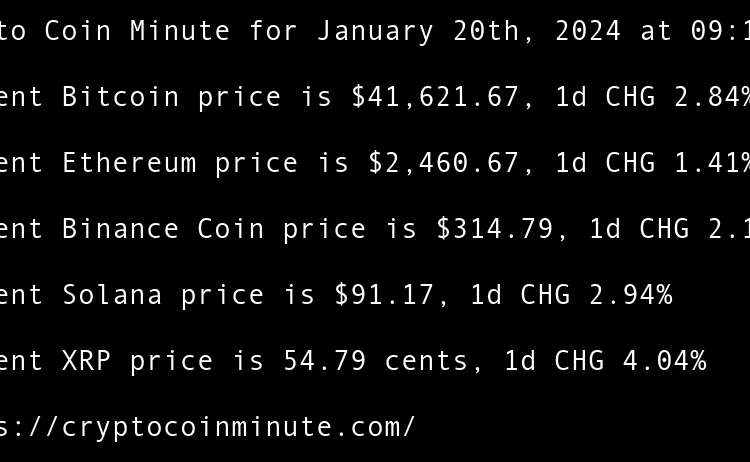 Current Bitcoin price is $41,621.67, 1d CHG 2.84% Current Ethereum price is $2,460.67, 1d CHG 1.41% Current Binance Coin price is $314.79, 1d CHG 2.16% Current Solana price is $91.17, 1d CHG 2.94% Current XRP price is 54.79 cents, 1d CHG 4.04% Church Allegedly Issued …