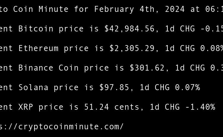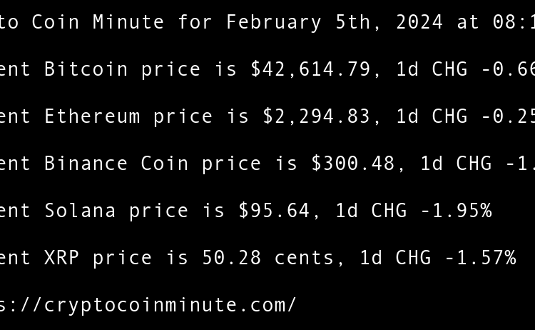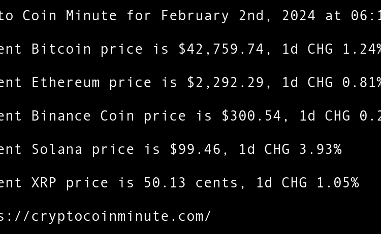 Current Bitcoin price is $42,614.79, 1d CHG -0.66% Current Ethereum price is $2,294.83, 1d CHG -0.25% Current Binance Coin price is $300.48, 1d CHG -1.79% Current Solana price is $95.64, 1d CHG -1.95% Current XRP price is 50.28 cents, 1d CHG -1.57% Netflix to Air …