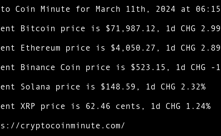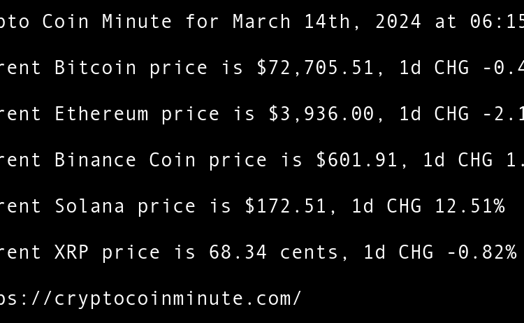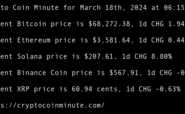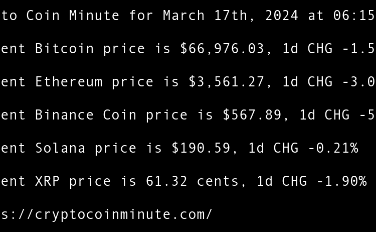 Current Bitcoin price is $63,585.82, 1d CHG 0.38% Current Ethereum price is $3,338.58, 1d CHG 1.81% Current Binance Coin price is $532.06, 1d CHG 2.94% Current Solana price is $173.23, 1d CHG -4.79% Current XRP price is 59.62 cents, 1d CHG 0.07% $100 million fund …