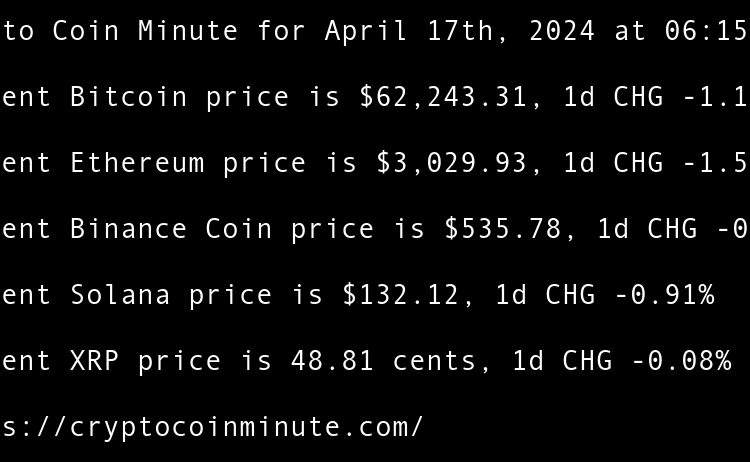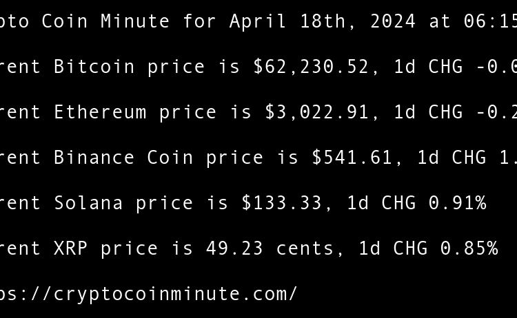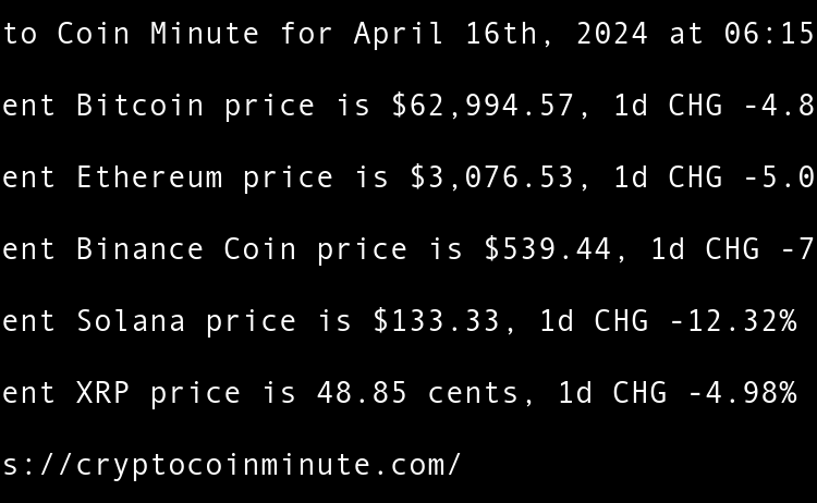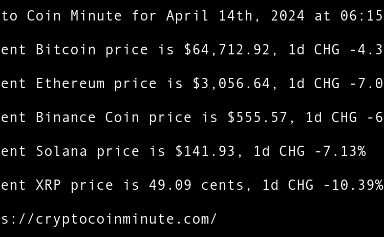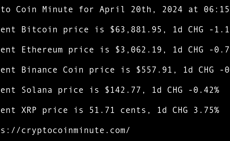 Current Bitcoin price is $63,881.95, 1d CHG -1.19% Current Ethereum price is $3,062.19, 1d CHG -0.75% Current Binance Coin price is $557.91, 1d CHG -0.30% Current Solana price is $142.77, 1d CHG -0.42% Current XRP price is 51.71 cents, 1d CHG 3.75% Bitcoin spot ETFs …