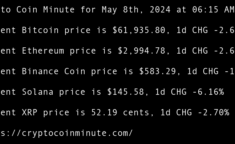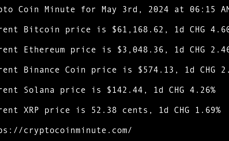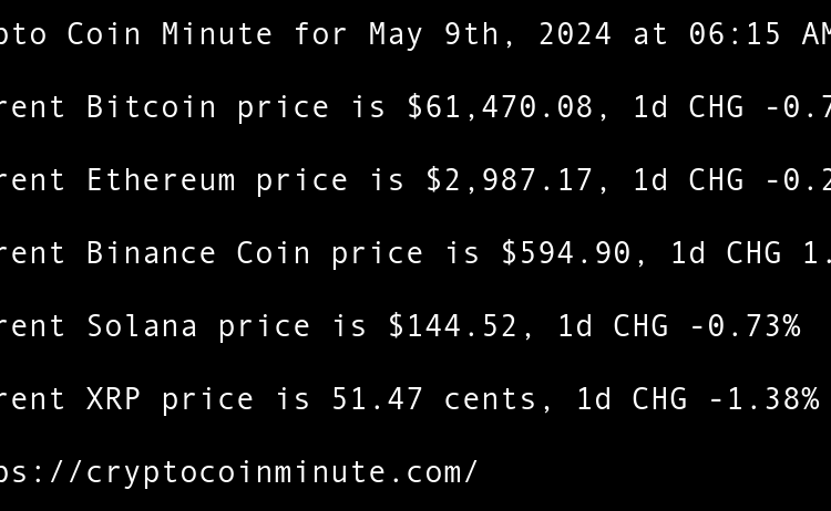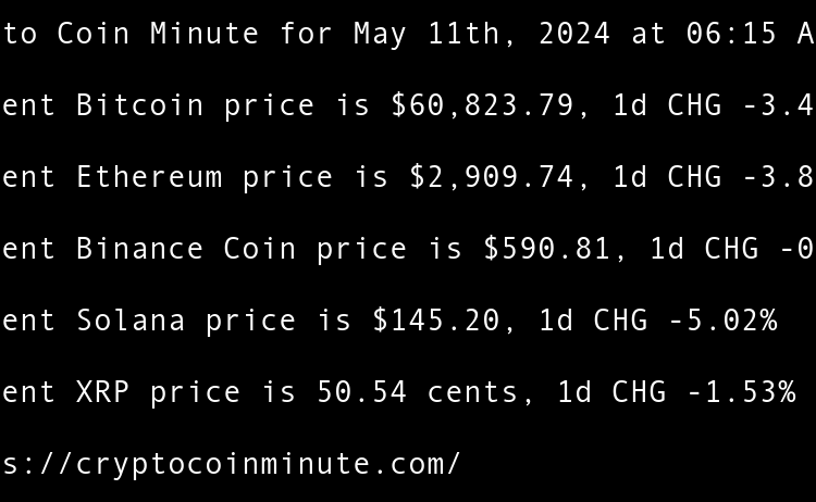Current Bitcoin price is $60,823.79, 1d CHG -3.46% Current Ethereum price is $2,909.74, 1d CHG -3.88% Current Binance Coin price is $590.81, 1d CHG -0.68% Current Solana price is $145.20, 1d CHG -5.02% Current XRP price is 50.54 cents, 1d CHG -1.53% India Approves Crypto …