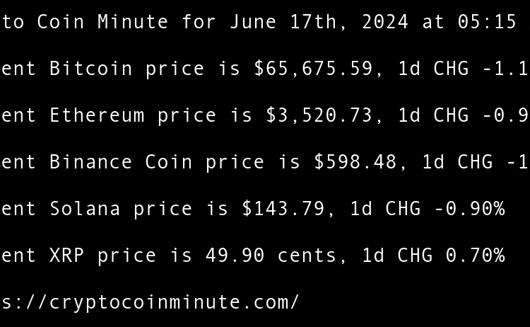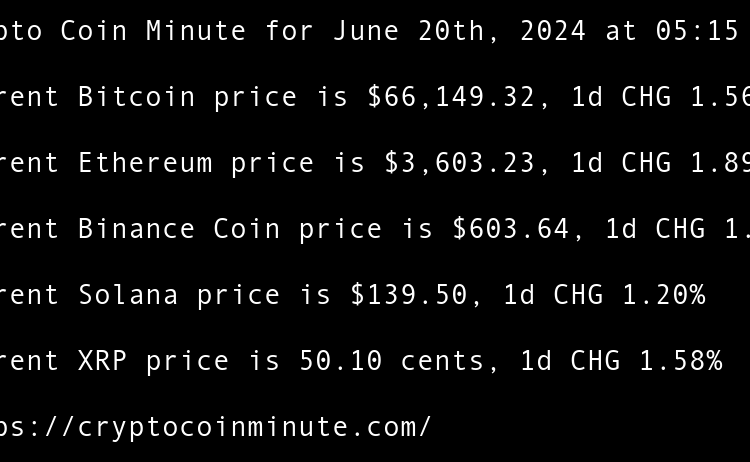 Current Bitcoin price is $66,149.32, 1d CHG 1.56% Current Ethereum price is $3,603.23, 1d CHG 1.89% Current Binance Coin price is $603.64, 1d CHG 1.17% Current Solana price is $139.50, 1d CHG 1.20% Current XRP price is 50.10 cents, 1d CHG 1.58% Binance to appeal …