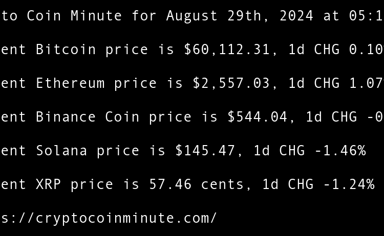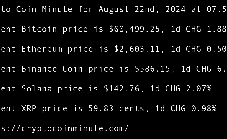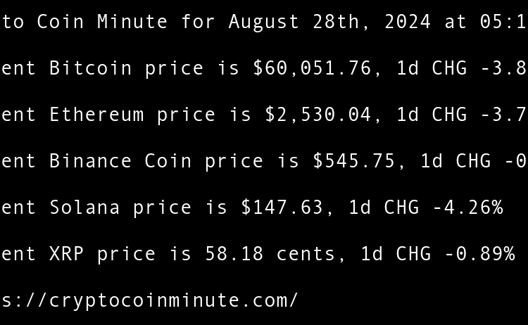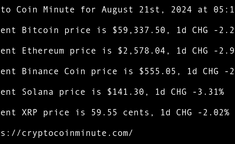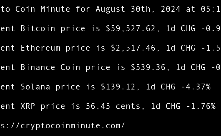 Current Bitcoin price is $59,527.62, 1d CHG -0.97% Current Ethereum price is $2,517.46, 1d CHG -1.55% Current Binance Coin price is $539.36, 1d CHG -0.86% Current Solana price is $139.12, 1d CHG -4.37% Current XRP price is 56.45 cents, 1d CHG -1.76% Indias Central Bank …
