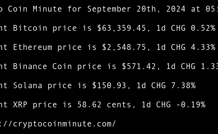 Current Bitcoin price is $63,359.45, 1d CHG 0.52% Current Ethereum price is $2,548.75, 1d CHG 4.33% Current Binance Coin price is $571.42, 1d CHG 1.33% Current Solana price is $150.93, 1d CHG 7.38% Current XRP price is 58.62 cents, 1d CHG -0.19% DeFi lending protocol …