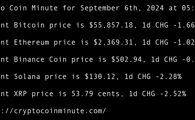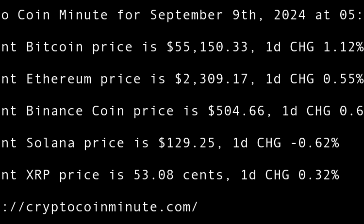 Current Bitcoin price is $55,150.33, 1d CHG 1.12% Current Ethereum price is $2,309.17, 1d CHG 0.55% Current Binance Coin price is $504.66, 1d CHG 0.62% Current Solana price is $129.25, 1d CHG -0.62% Current XRP price is 53.08 cents, 1d CHG 0.32% Ethereum 50% below …