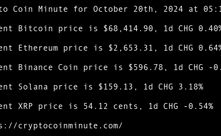Current Bitcoin price is $68,414.90, 1d CHG 0.40% Current Ethereum price is $2,653.31, 1d CHG 0.64% Current Binance Coin price is $596.78, 1d CHG -0.17% Current Solana price is $159.13, 1d CHG 3.18% Current XRP price is 54.12 cents, 1d CHG -0.54% Bitcoin fees surge …