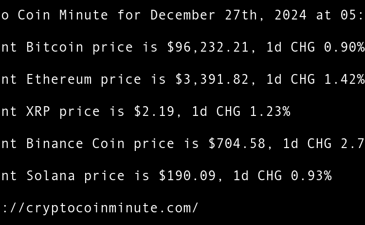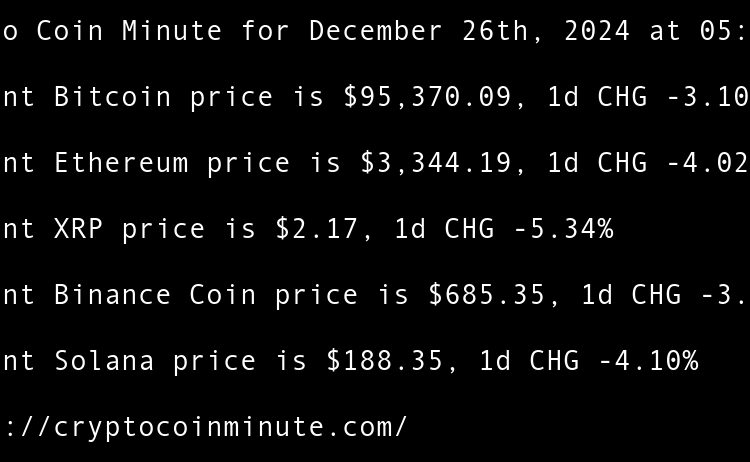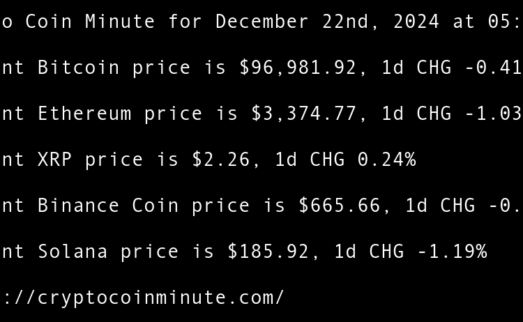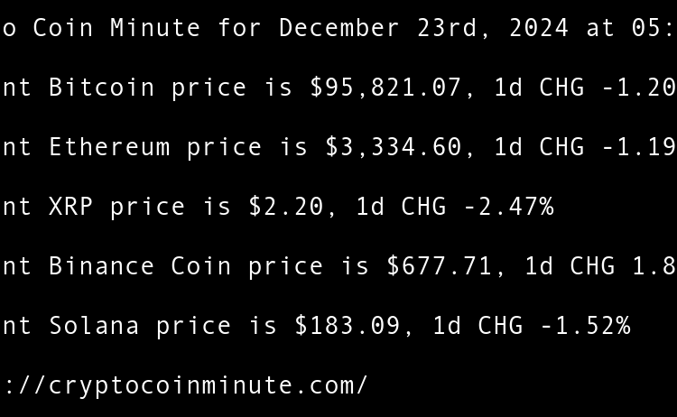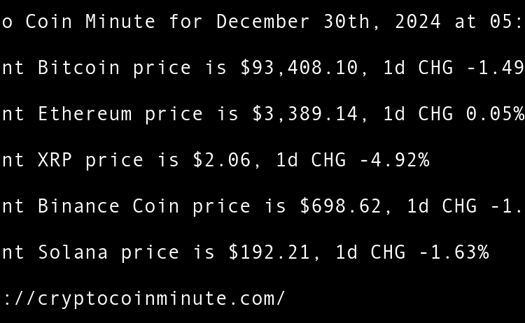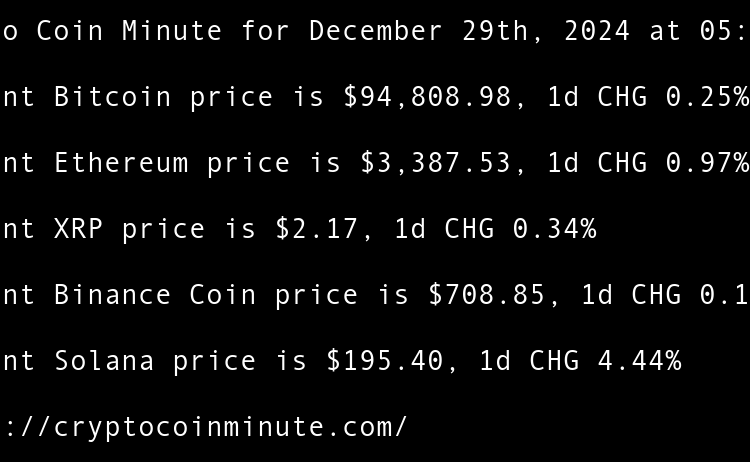 Current Bitcoin price is $94,874.68, 1d CHG 1.57% Current Ethereum price is $3,402.31, 1d CHG 0.39% Current XRP price is $2.10, 1d CHG 1.52% Current Binance Coin price is $707.13, 1d CHG 1.22% Current Solana price is $193.85, 1d CHG 0.84% Malaysia Cracks Down on …