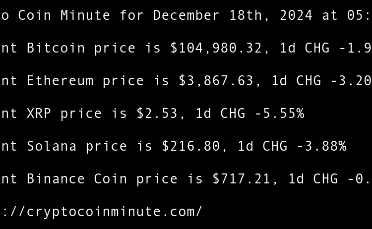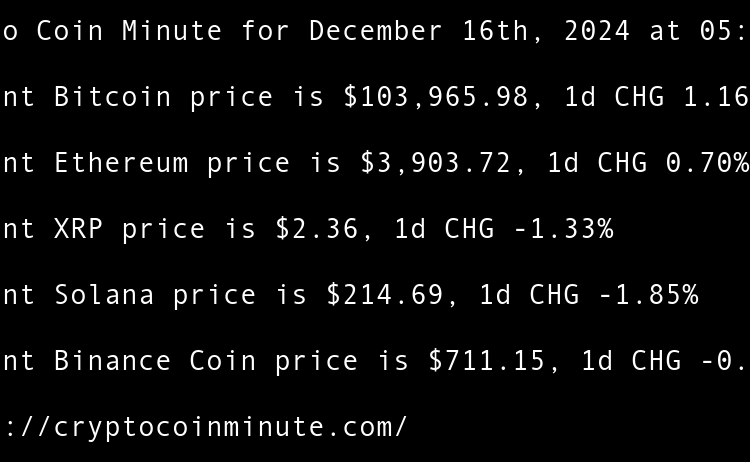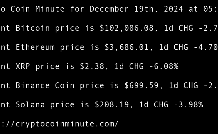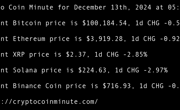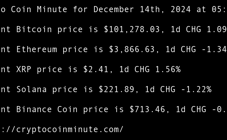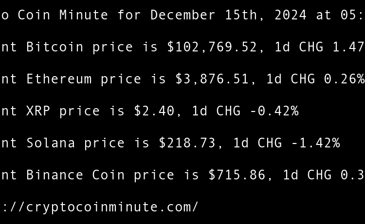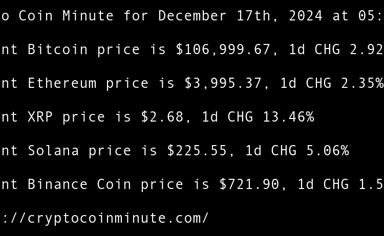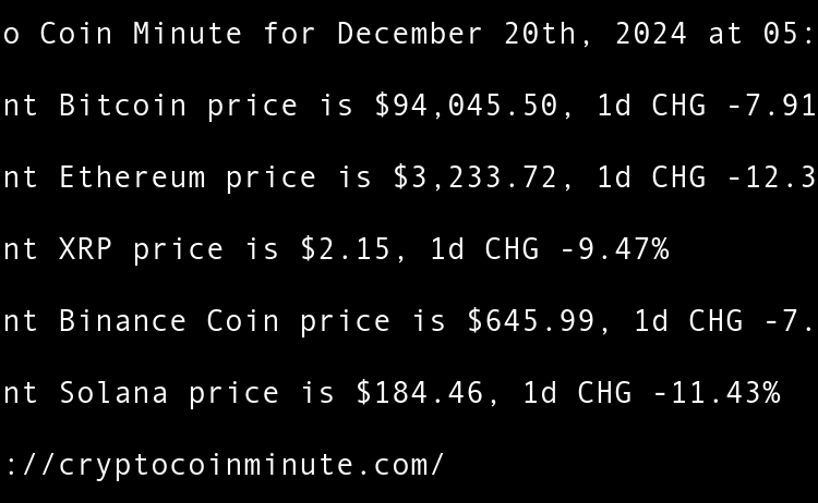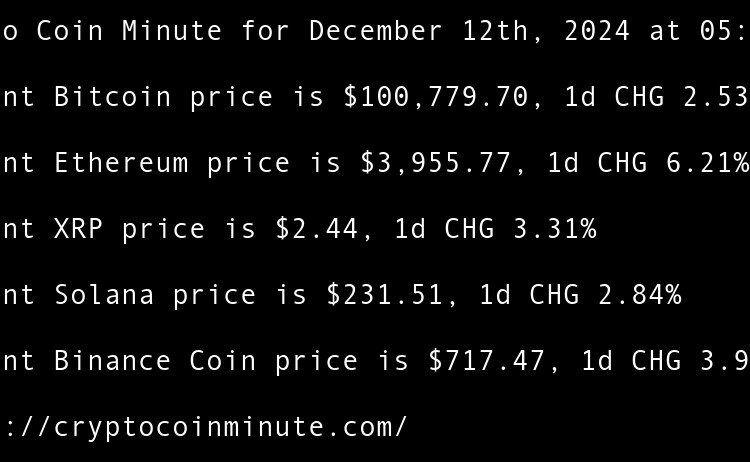 Current Bitcoin price is $97,381.02, 1d CHG 3.71% Current Ethereum price is $3,410.02, 1d CHG 5.45% Current XRP price is $2.25, 1d CHG 4.61% Current Binance Coin price is $669.63, 1d CHG 3.66% Current Solana price is $188.16, 1d CHG 2.01% Tethers $775 million Rumble …