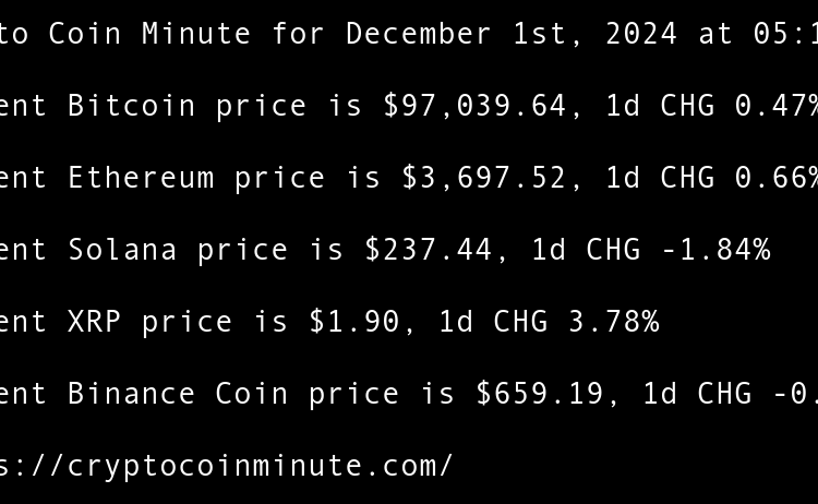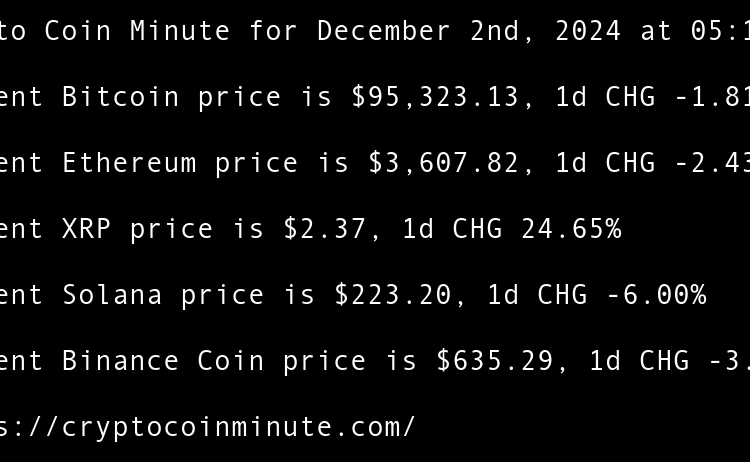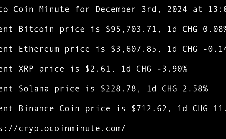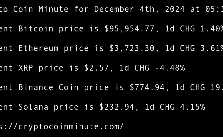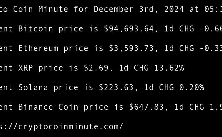 Current Bitcoin price is $96,162.41, 1d CHG 0.25% Current Ethereum price is $3,853.32, 1d CHG 7.86% Current XRP price is $2.55, 1d CHG 4.63% Current Solana price is $234.56, 1d CHG 5.06% Current Binance Coin price is $759.42, 1d CHG 18.73% Political Turmoil In South …