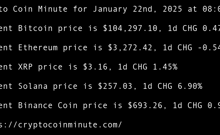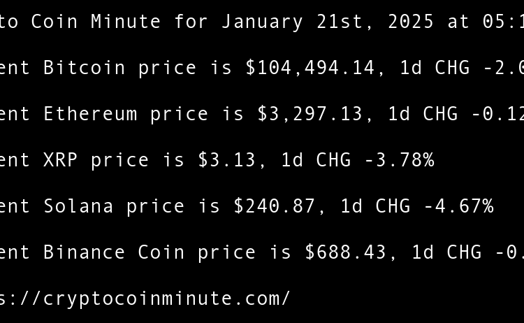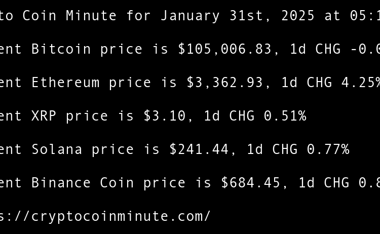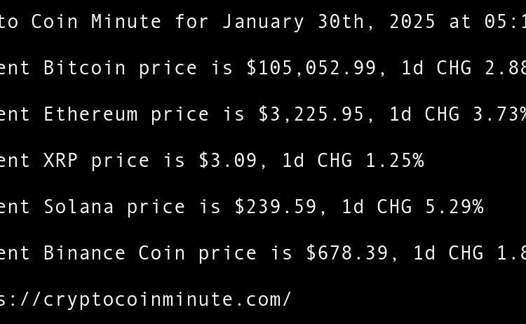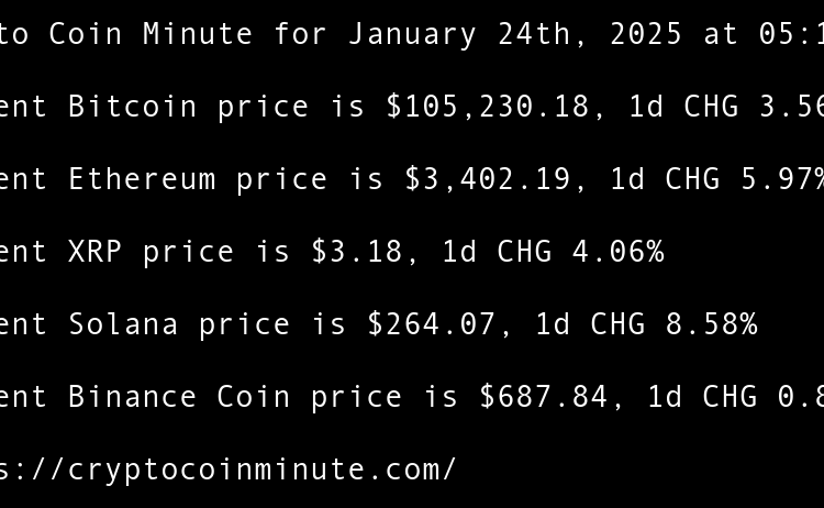 Current Bitcoin price is $105,006.83, 1d CHG -0.03% Current Ethereum price is $3,362.93, 1d CHG 4.25% Current XRP price is $3.10, 1d CHG 0.51% Current Solana price is $241.44, 1d CHG 0.77% Current Binance Coin price is $684.45, 1d CHG 0.89% Sam Bankman-Frieds Parents Seek …