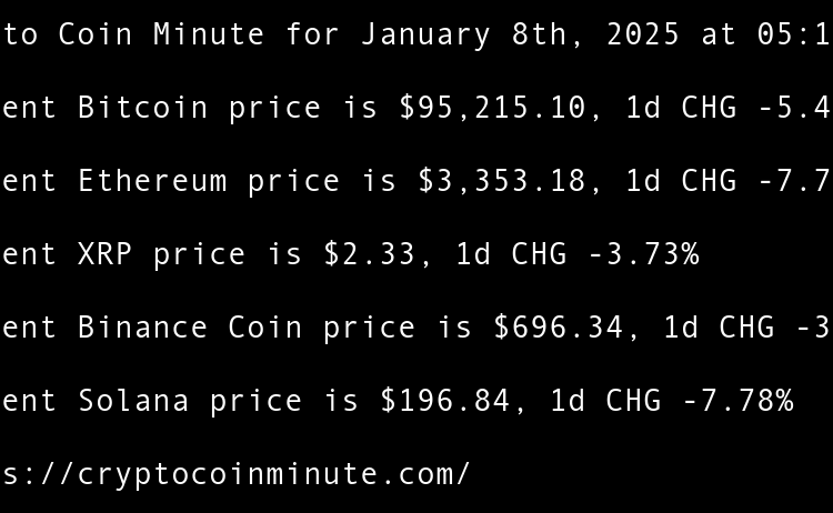 Current Bitcoin price is $95,215.10, 1d CHG -5.49% Current Ethereum price is $3,353.18, 1d CHG -7.76% Current XRP price is $2.33, 1d CHG -3.73% Current Binance Coin price is $696.34, 1d CHG -3.88% Current Solana price is $196.84, 1d CHG -7.78% UBS Stays Bullish on …