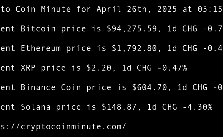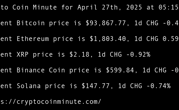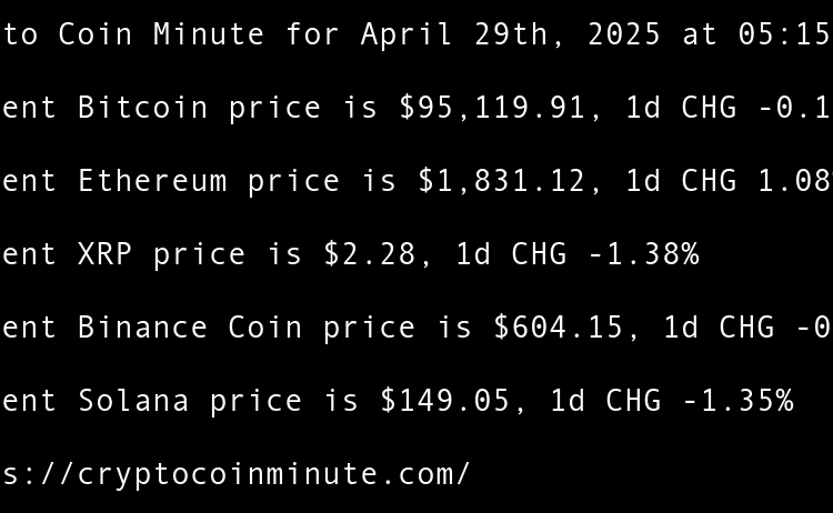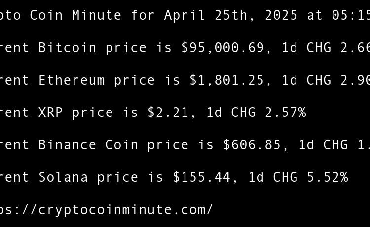 Current Bitcoin price is $95,098.37, 1d CHG -0.02% Current Ethereum price is $1,810.64, 1d CHG -1.14% Current XRP price is $2.23, 1d CHG -2.13% Current Binance Coin price is $602.30, 1d CHG -0.30% Current Solana price is $147.68, 1d CHG -0.92% Ledger scammers are sending …