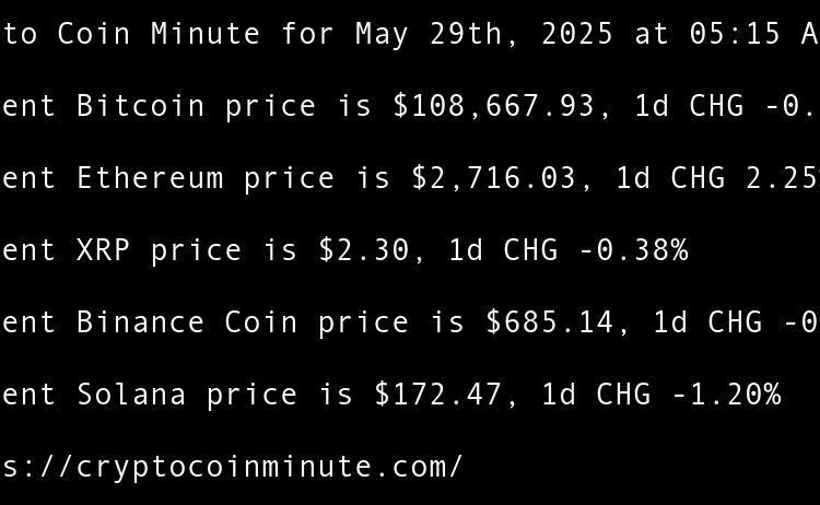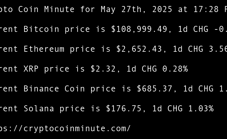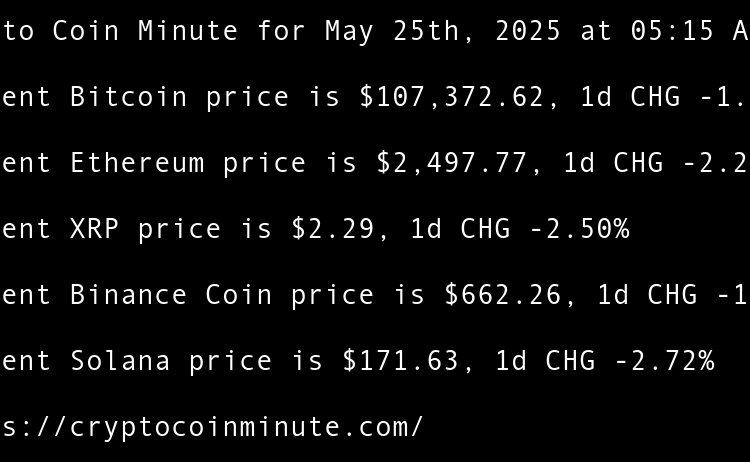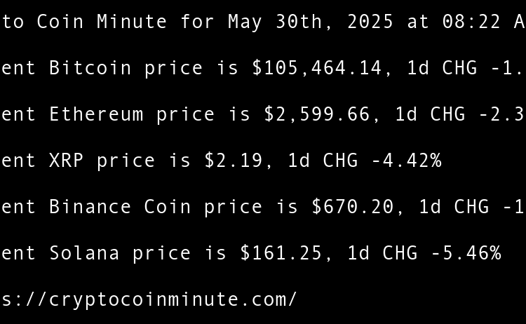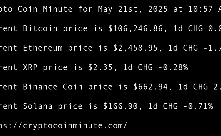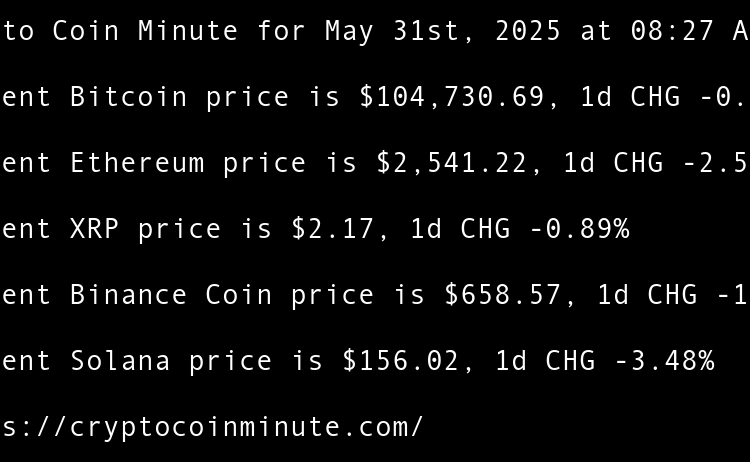 Current Bitcoin price is $104,730.69, 1d CHG -0.78% Current Ethereum price is $2,541.22, 1d CHG -2.59% Current XRP price is $2.17, 1d CHG -0.89% Current Binance Coin price is $658.57, 1d CHG -1.81% Current Solana price is $156.02, 1d CHG -3.48% Sui community approves release …