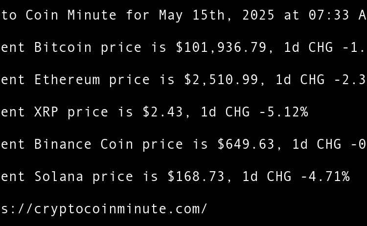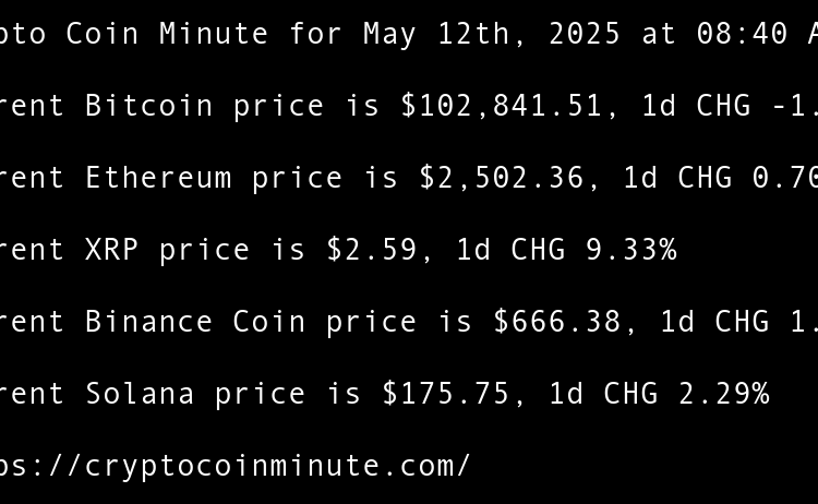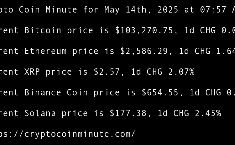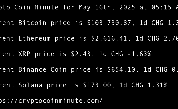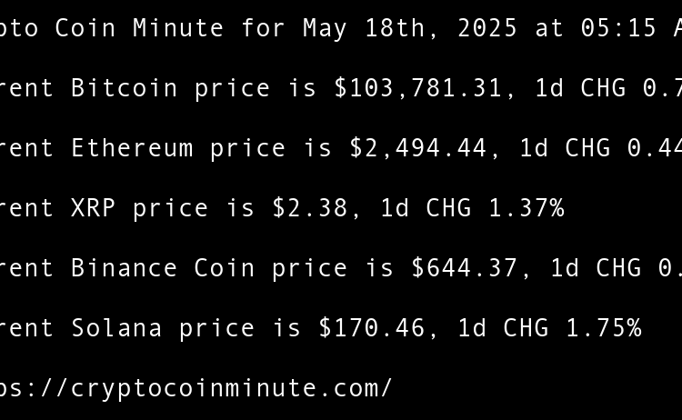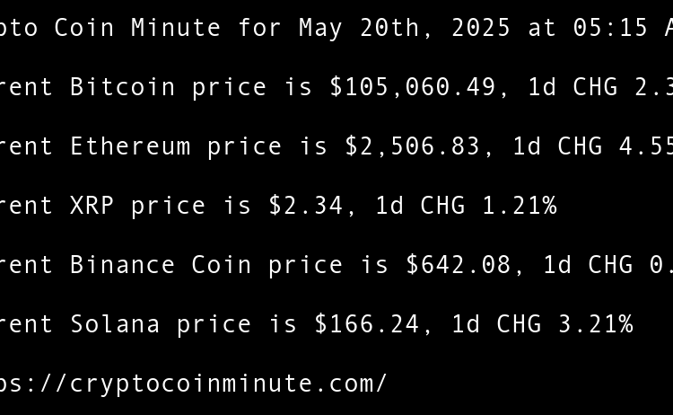 Current Bitcoin price is $105,060.49, 1d CHG 2.31% Current Ethereum price is $2,506.83, 1d CHG 4.55% Current XRP price is $2.34, 1d CHG 1.21% Current Binance Coin price is $642.08, 1d CHG 0.57% Current Solana price is $166.24, 1d CHG 3.21% Indonesias DigiAsia shares pop …