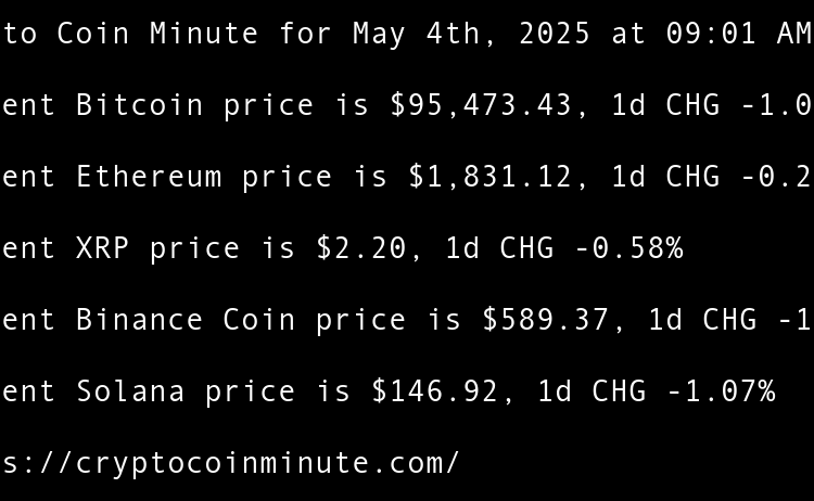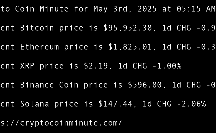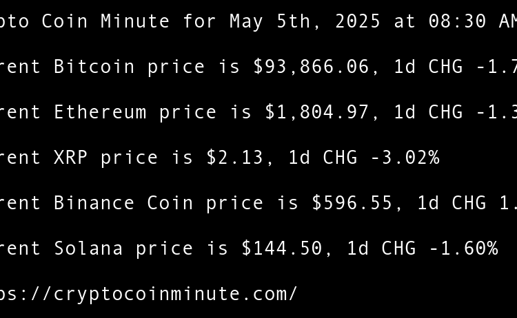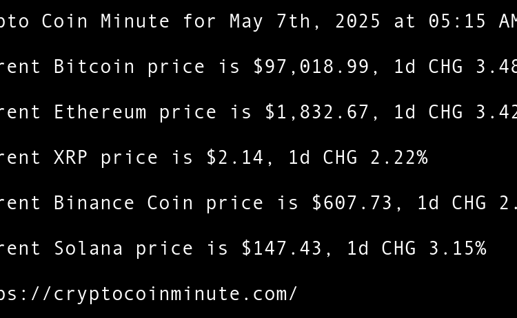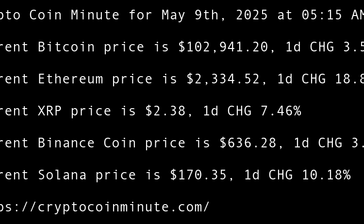 Current Bitcoin price is $102,941.20, 1d CHG 3.50% Current Ethereum price is $2,334.52, 1d CHG 18.81% Current XRP price is $2.38, 1d CHG 7.46% Current Binance Coin price is $636.28, 1d CHG 3.63% Current Solana price is $170.35, 1d CHG 10.18% US Stablecoin bill blocked …