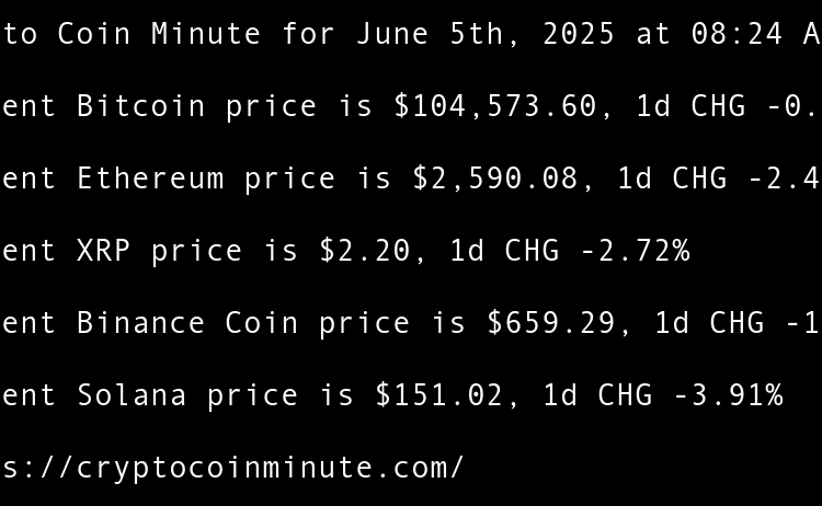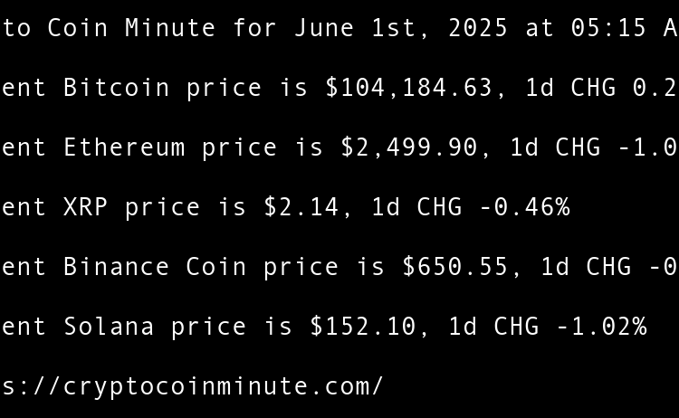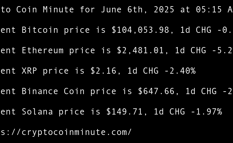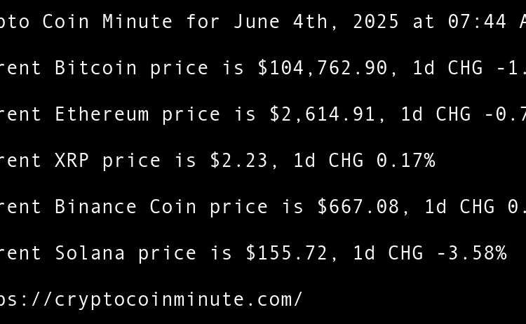 Current Bitcoin price is $105,765.34, 1d CHG 0.42% Current Ethereum price is $2,513.59, 1d CHG 0.69% Current XRP price is $2.26, 1d CHG 3.17% Current Binance Coin price is $650.60, 1d CHG 0.25% Current Solana price is $149.60, 1d CHG -1.32% Coinbase CEO says unnecessary …