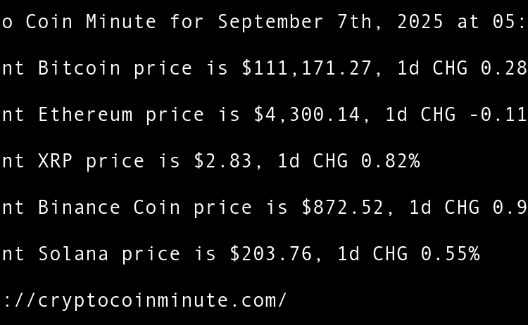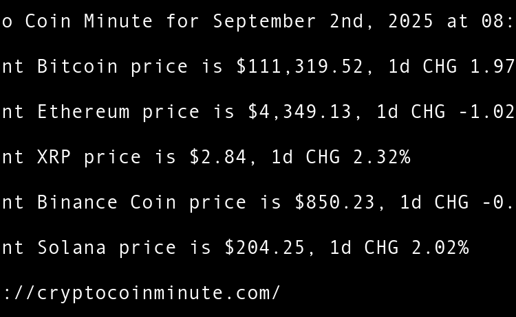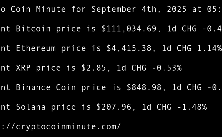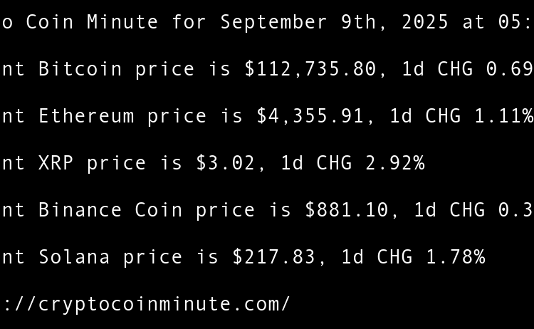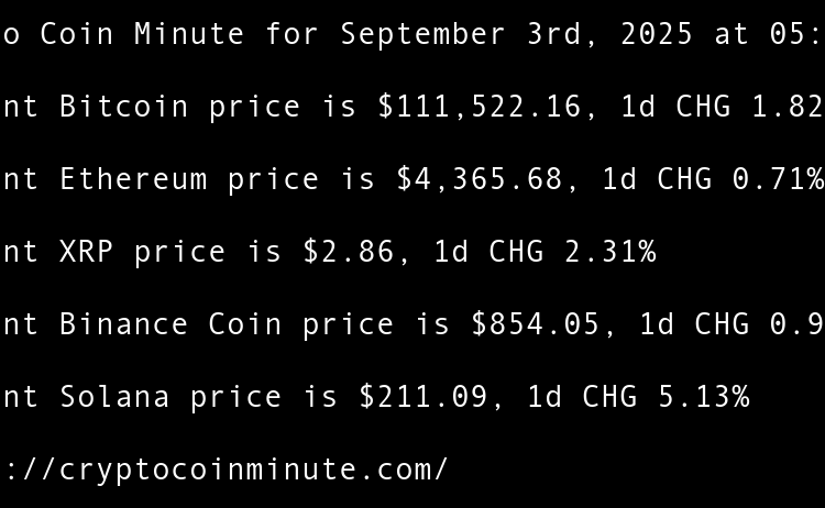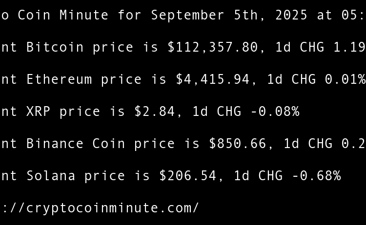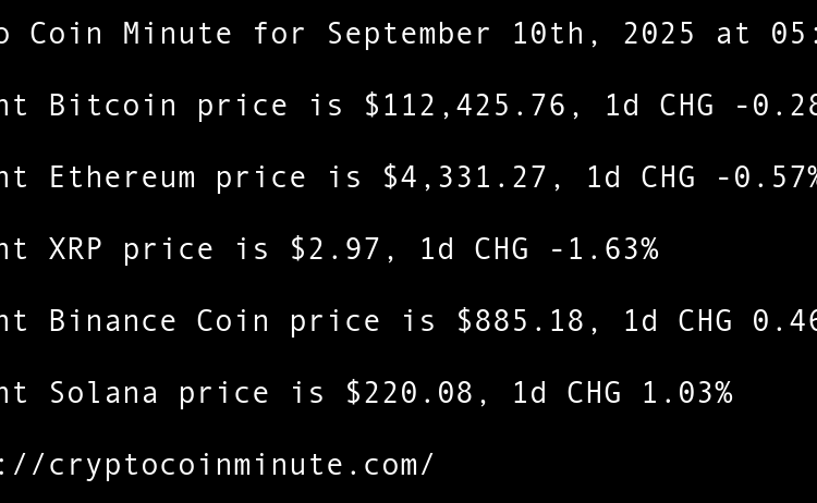 Current Bitcoin price is $112,425.76, 1d CHG -0.28% Current Ethereum price is $4,331.27, 1d CHG -0.57% Current XRP price is $2.97, 1d CHG -1.63% Current Binance Coin price is $885.18, 1d CHG 0.46% Current Solana price is $220.08, 1d CHG 1.03% Belarus President Calls on …