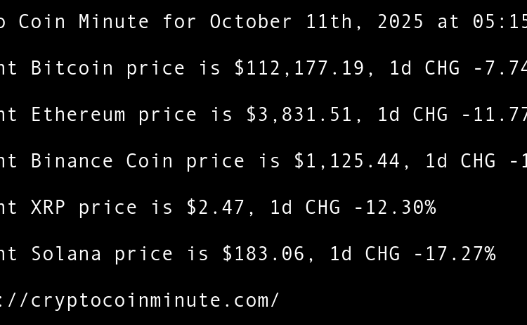 Current Bitcoin price is $112,177.19, 1d CHG -7.74% Current Ethereum price is $3,831.51, 1d CHG -11.77% Current Binance Coin price is $1,125.44, 1d CHG -11.61% Current XRP price is $2.47, 1d CHG -12.30% Current Solana price is $183.06, 1d CHG -17.27% 10 Major Banks Unite …