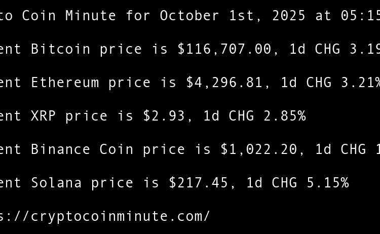 Current Bitcoin price is $116,707.00, 1d CHG 3.19% Current Ethereum price is $4,296.81, 1d CHG 3.21% Current XRP price is $2.93, 1d CHG 2.85% Current Binance Coin price is $1,022.20, 1d CHG 1.02% Current Solana price is $217.45, 1d CHG 5.15% SEC Staff Support Advisers …