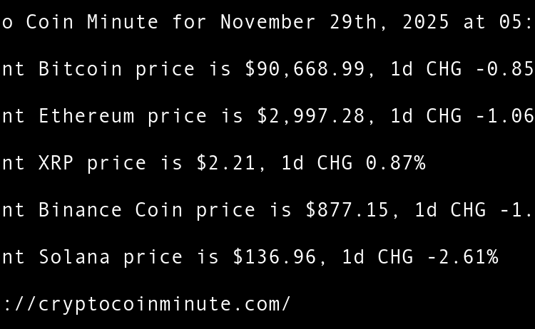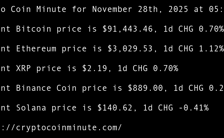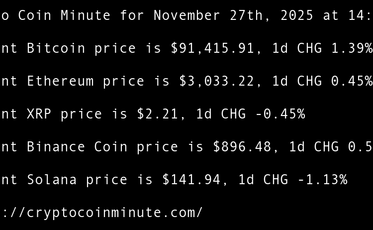 Current Bitcoin price is $91,709.02, 1d CHG 0.81% Current Ethereum price is $3,044.87, 1d CHG 1.41% Current XRP price is $2.21, 1d CHG -0.24% Current Binance Coin price is $898.97, 1d CHG 2.12% Current Solana price is $139.39, 1d CHG 1.54% Ether-Centric DAT Bitmine Advances …
