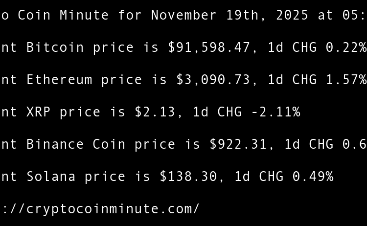 Current Bitcoin price is $91,701.13, 1d CHG 0.11% Current Ethereum price is $3,026.21, 1d CHG -2.09% Current XRP price is $2.12, 1d CHG -0.53% Current Binance Coin price is $901.56, 1d CHG -2.25% Current Solana price is $141.78, 1d CHG 2.51% Cloudflare Outage Highlights Need …
