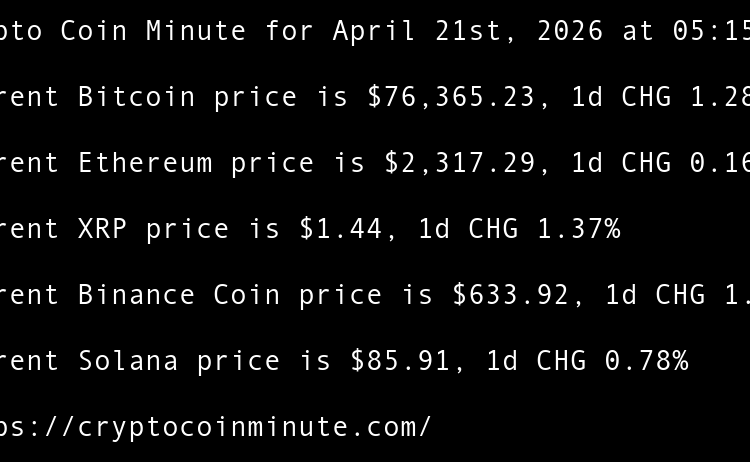 Current Bitcoin price is $76,365.23, 1d CHG 1.28% Current Ethereum price is $2,317.29, 1d CHG 0.16% Current XRP price is $1.44, 1d CHG 1.37% Current Binance Coin price is $633.92, 1d CHG 1.22% Current Solana price is $85.91, 1d CHG 0.78% Crypto Market Receives $1.4 …