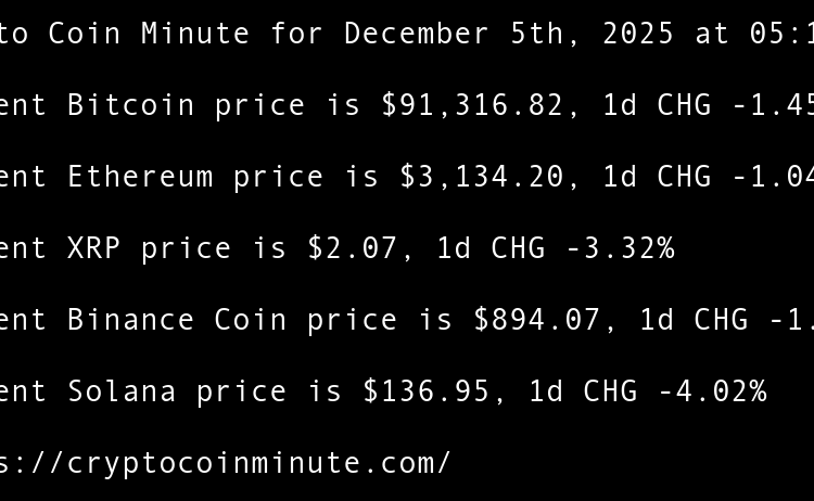 Current Bitcoin price is $89,026.86, 1d CHG -1.30% Current Ethereum price is $3,082.05, 1d CHG -0.94% Current Binance Coin price is $884.76, 1d CHG -2.10% Current XRP price is $1.99, 1d CHG -1.84% Current Solana price is $130.74, 1d CHG -2.17% SEC Educates Retail Investors …