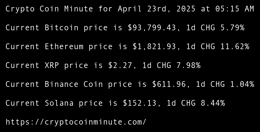 Current Bitcoin price is $93,799.43, 1d CHG 5.79%