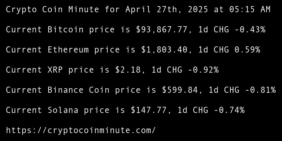 Current Bitcoin price is $93,867.77, 1d CHG -0.43%