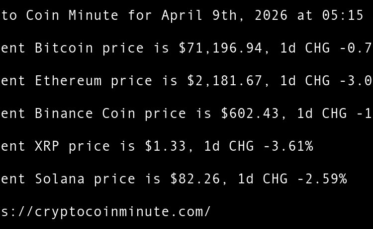 Crypto Coin Minute for April 9th, 2026 at 05:15 AM Pacific Time.